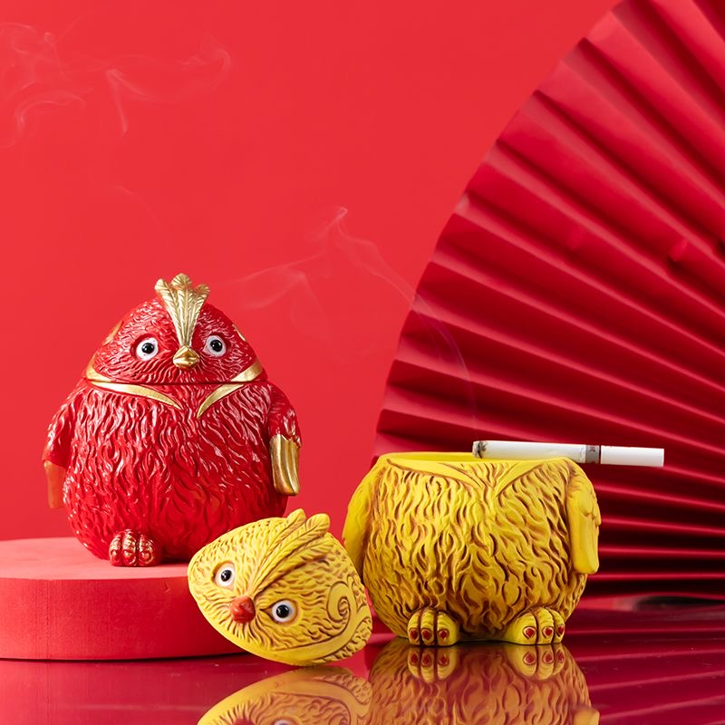 Red new ashtray creative cute personality trend decoration with cover fly ash is not easy to find home living room