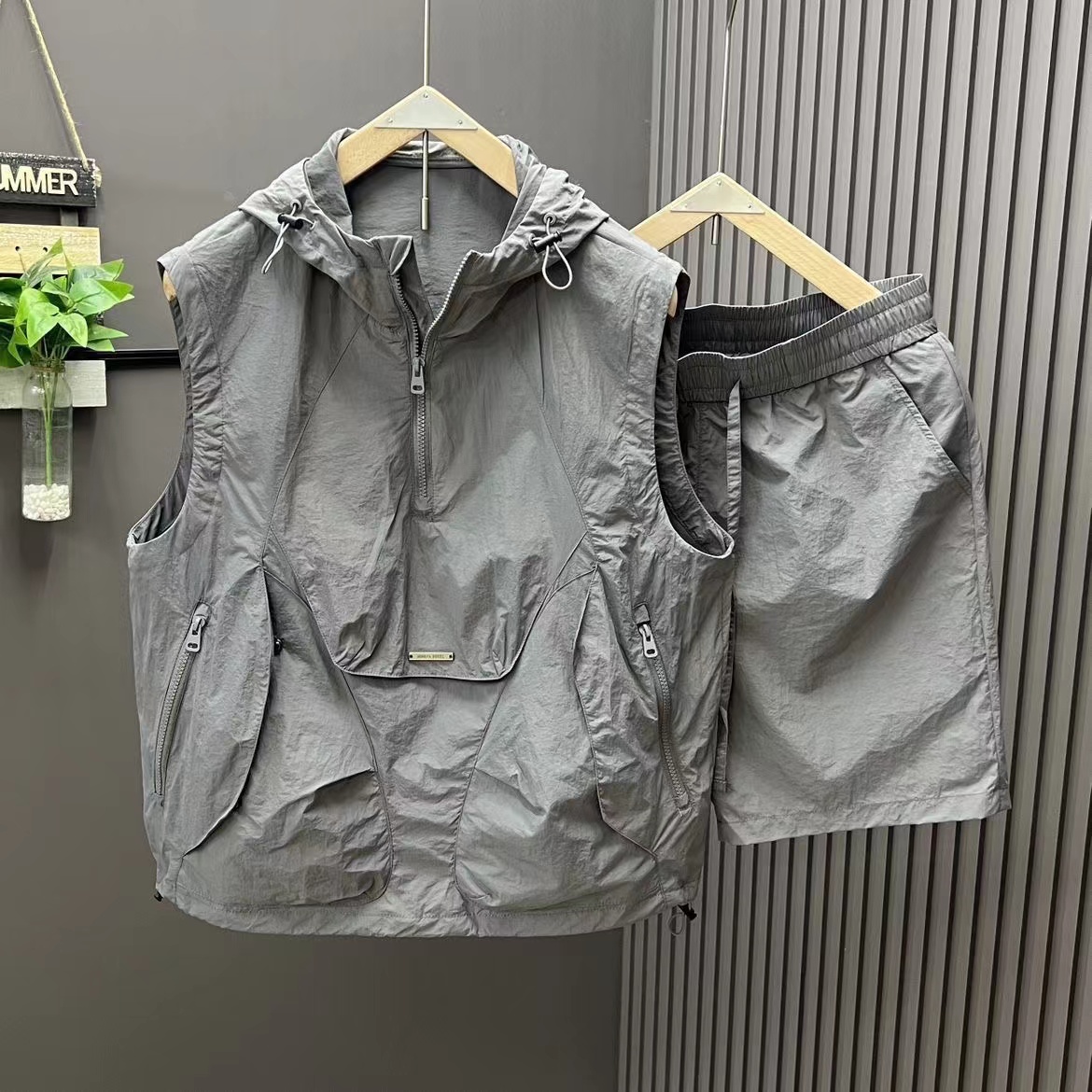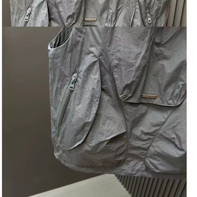 Cardigan zipper hooded sleeveless T-shirt men's summer trend cargo three-dimensional pocket design sense vest