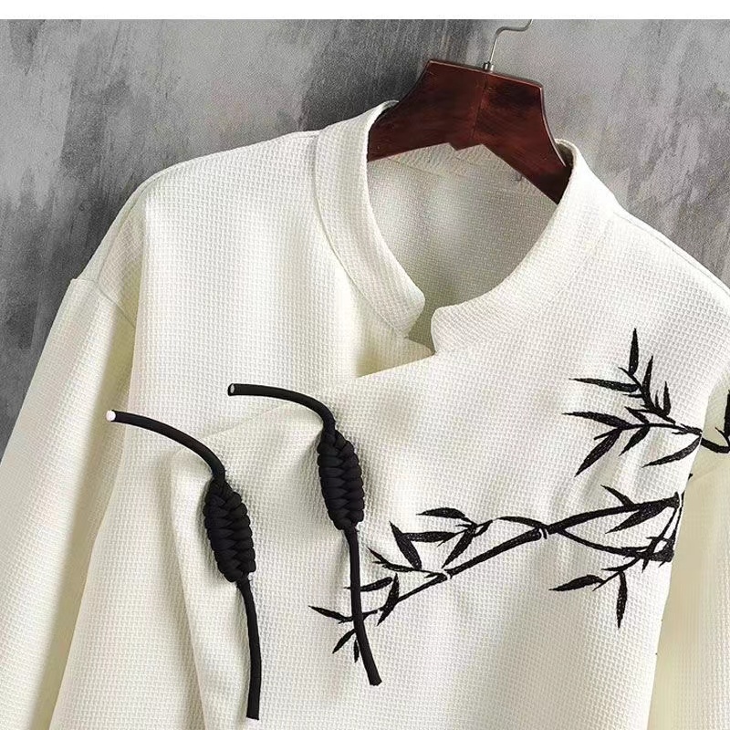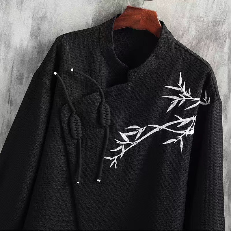 [Ink bamboo] Chinese style men's printing thin Tang suit jacket outside the new Chinese style to wear a vintage disc buckle shir