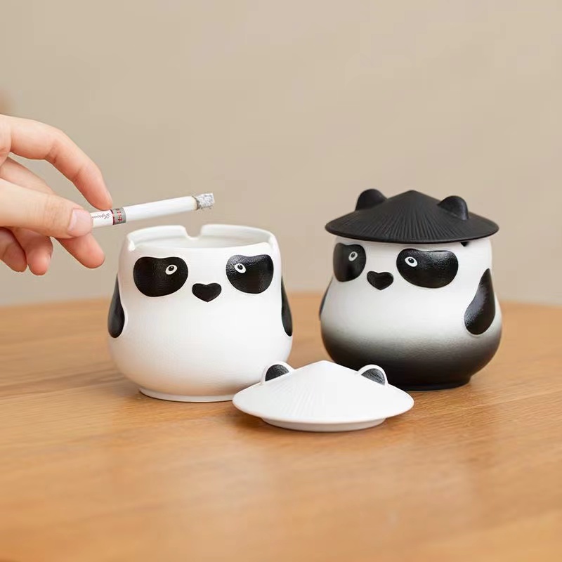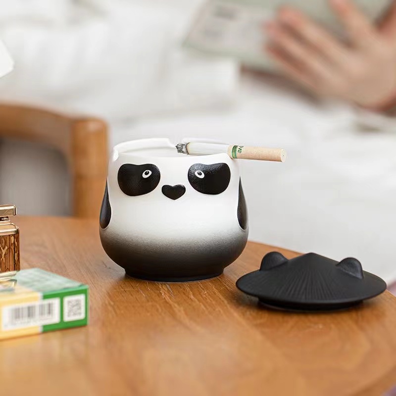 Ashtray fly-proof creative home panda cute office cement cartoon with cover living room advanced ashtray trend