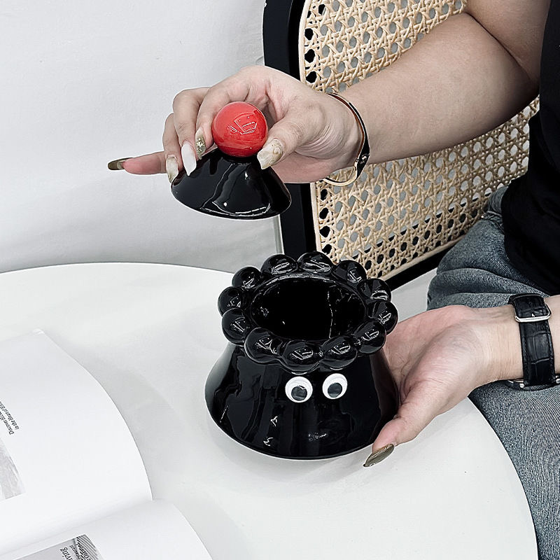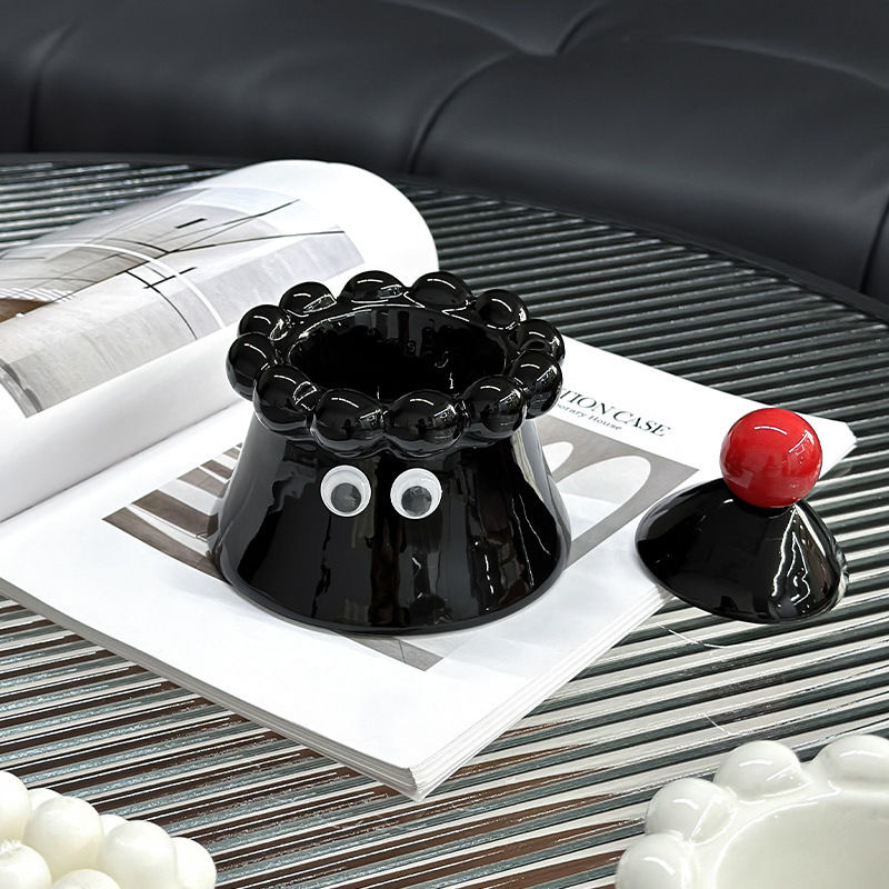 Volcano high appearance level ceramic ashtray Nordic creative ins fly-proof living room with cover household decoration ashtray