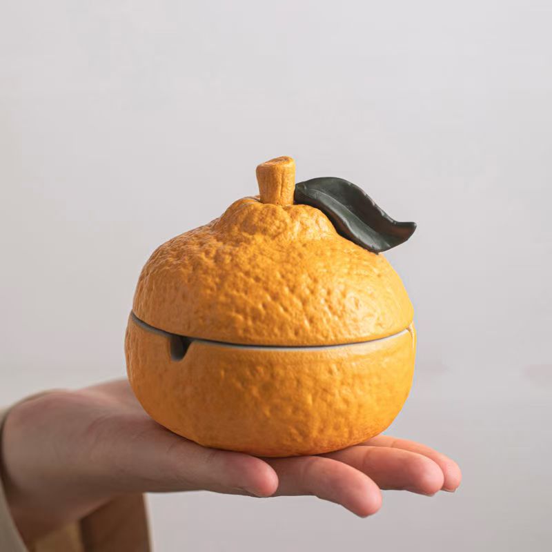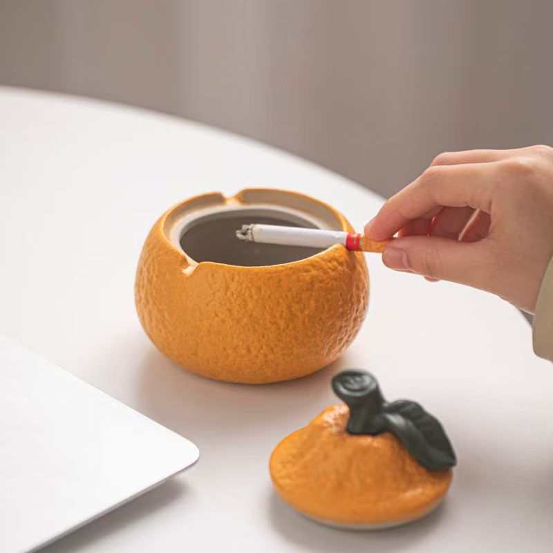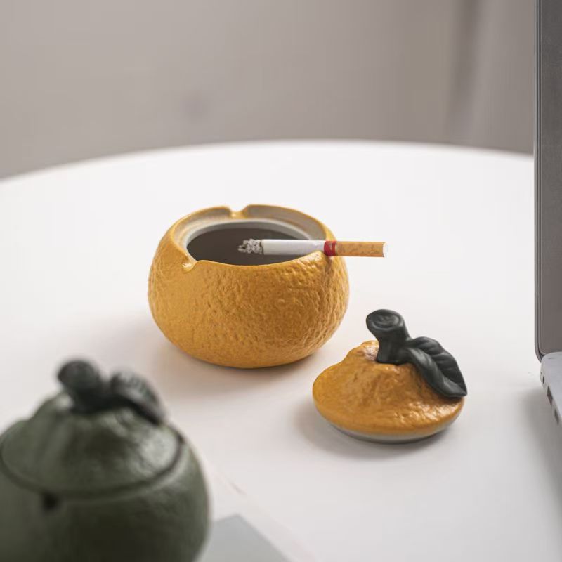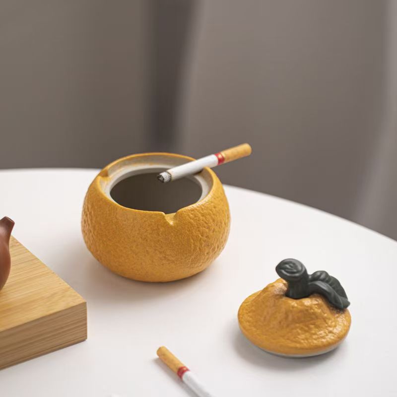 Orange ashtray High appearance level light luxury windproof fly ash Home desk tea table office large capacity ashtray