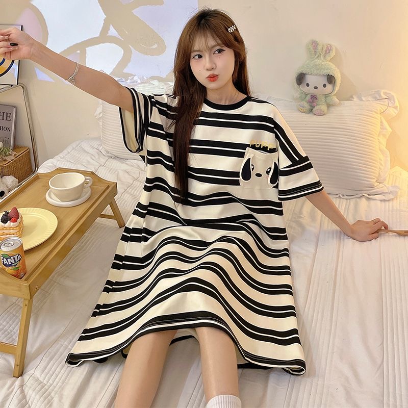 Can wear pajamas female summer 2024 new ins style lazy loose version short-sleeved nightdress high appearance level home wear