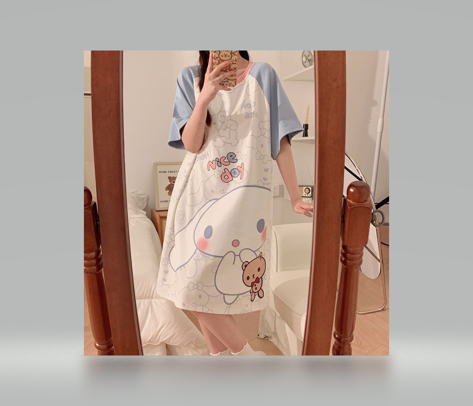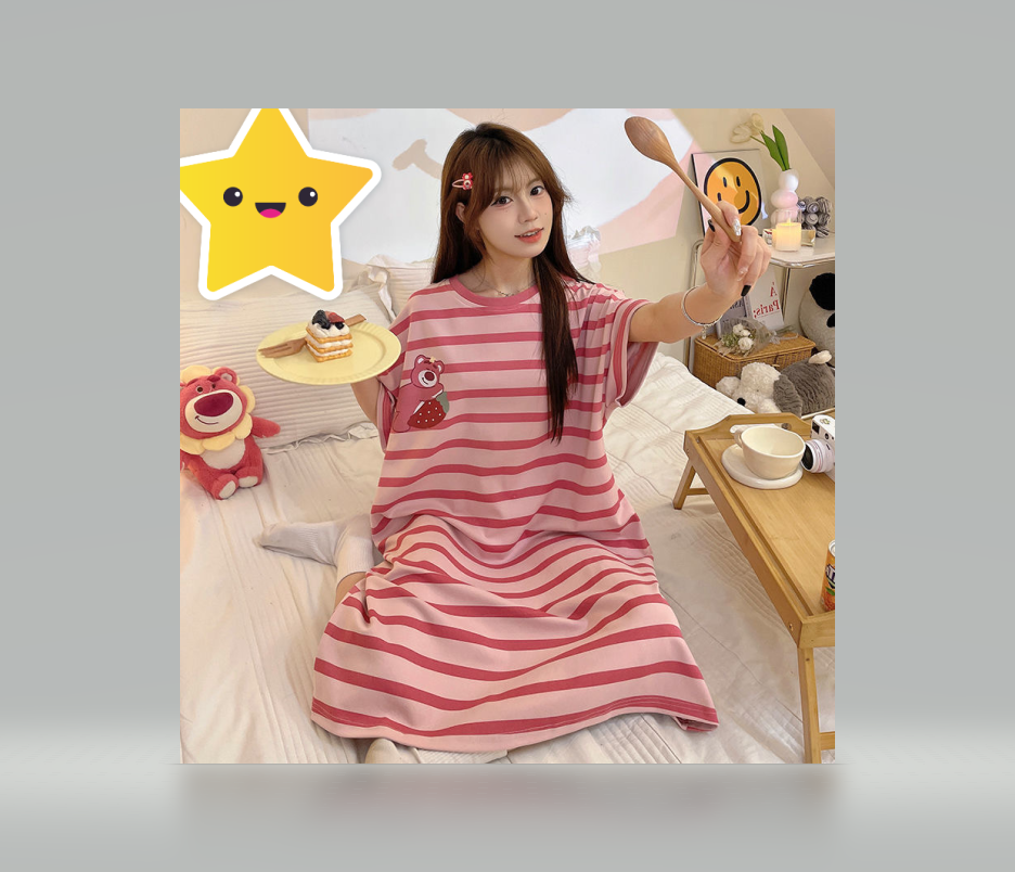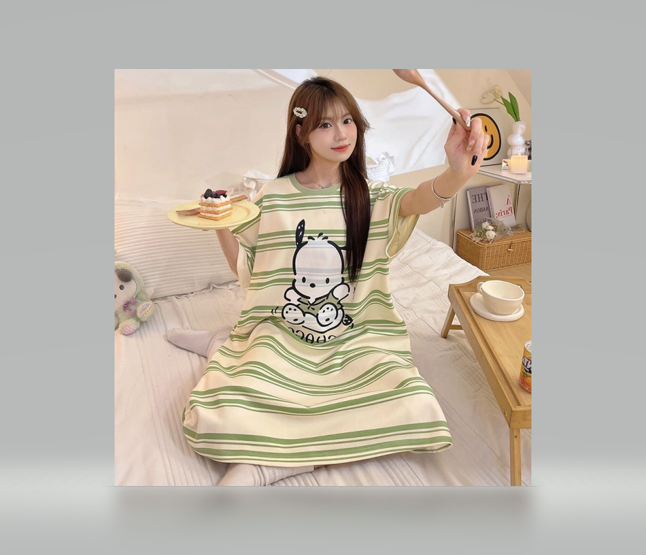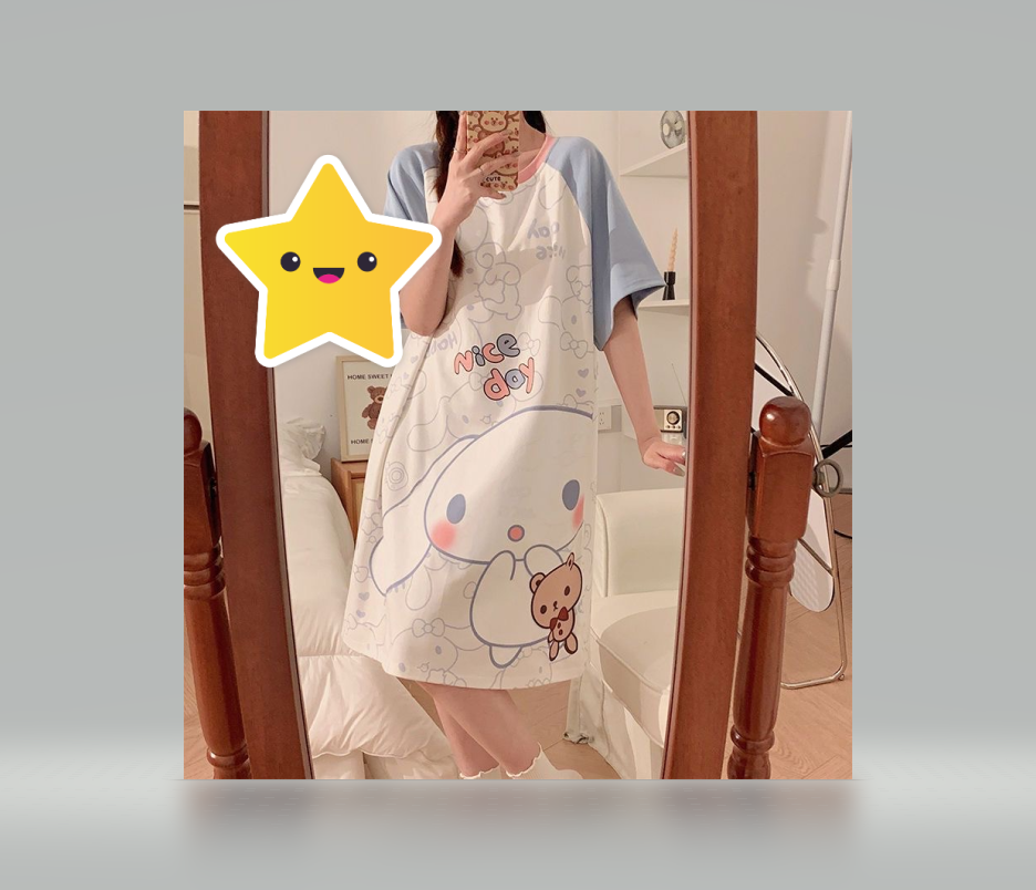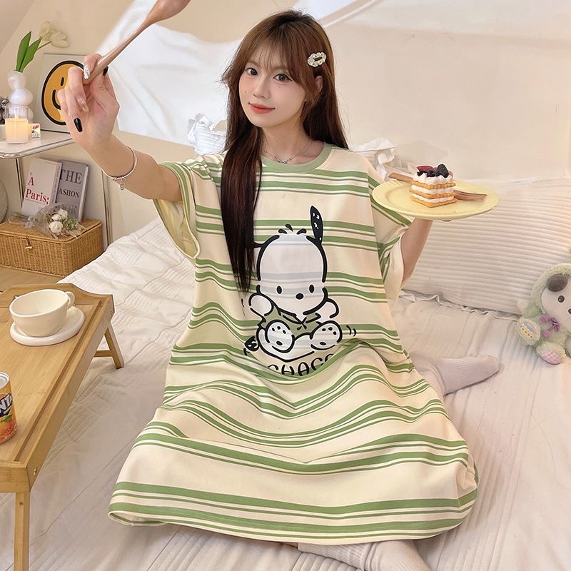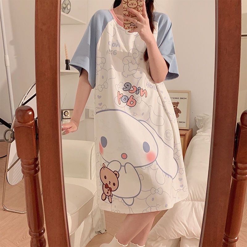 Can wear pajamas women summer wind lazy loose version short-sleeved nightdress high appearance level home wear