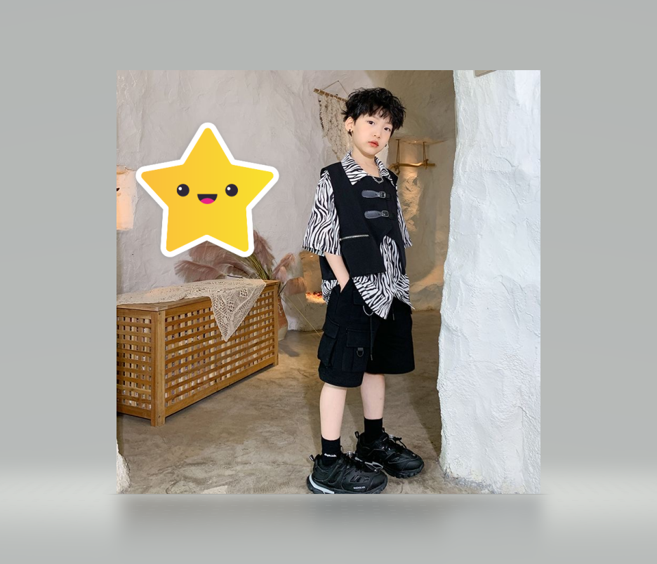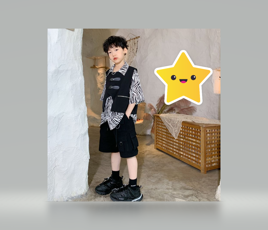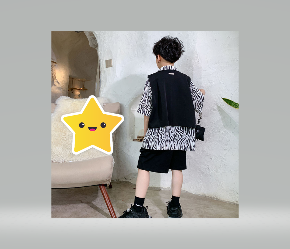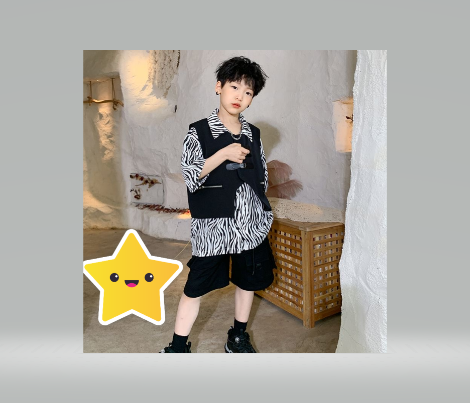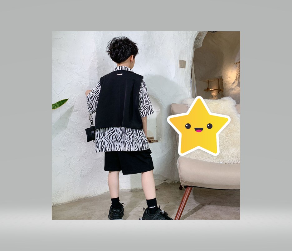 Three-piece black suit leather buckle waistcoat boy's new summer function wind big child street dance children's cargo tide