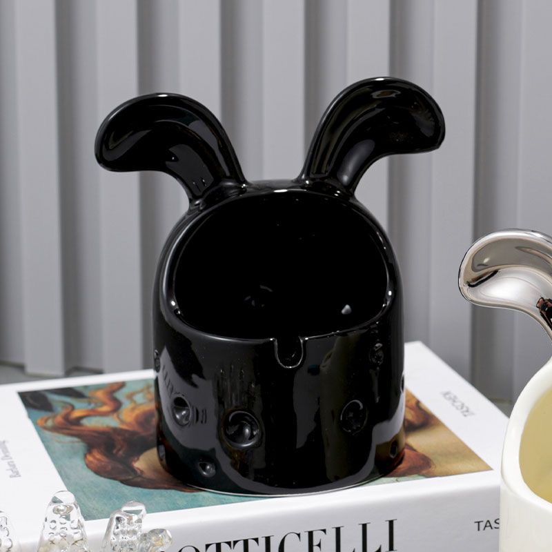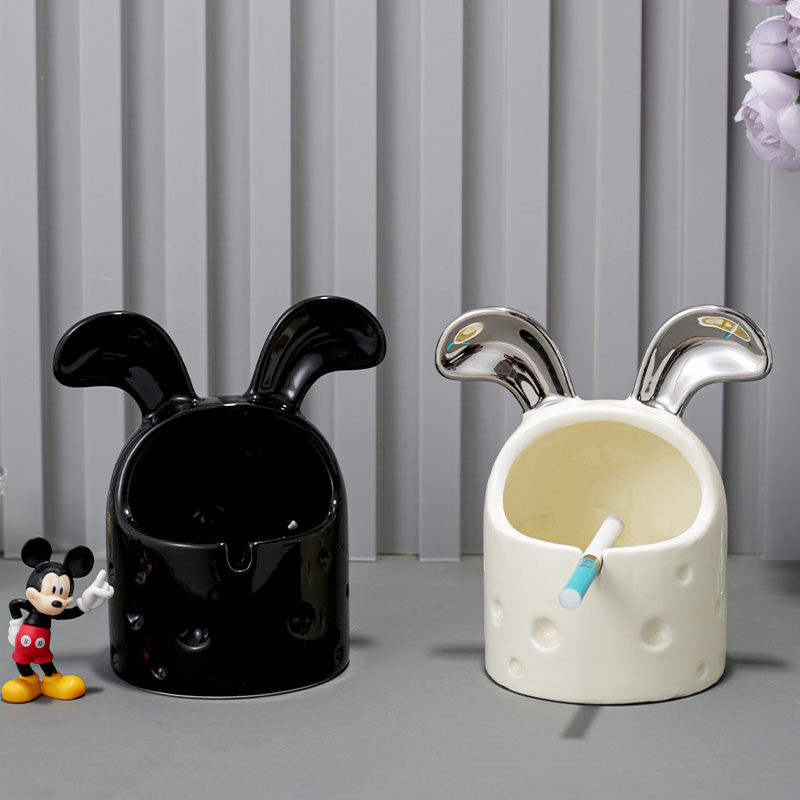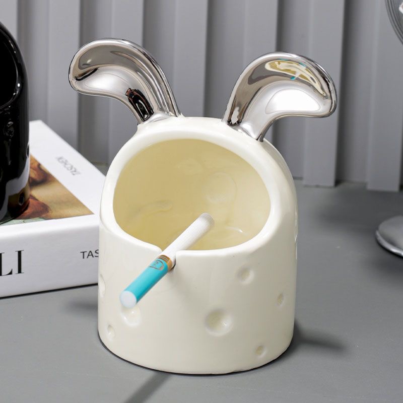 Cute cream wind rabbit ashtray Simple new ceramic living room desktop windproof ash cheese personality ashtray
