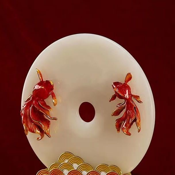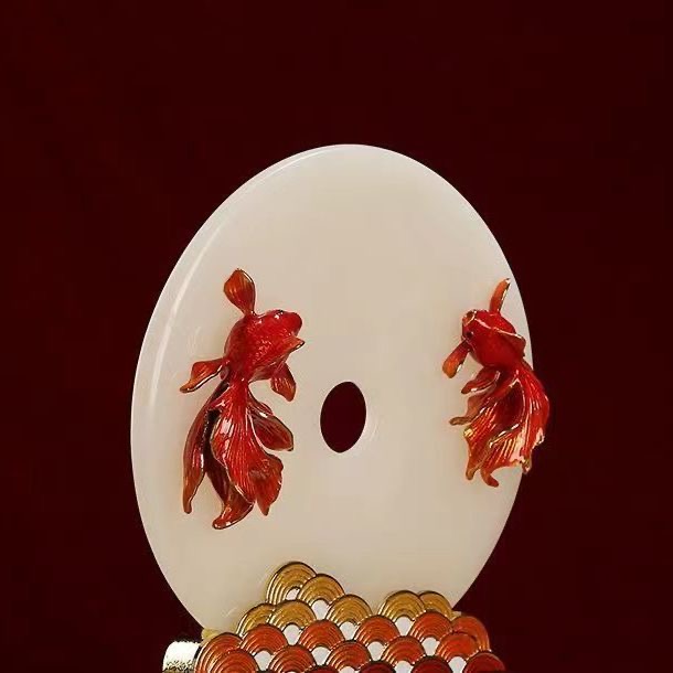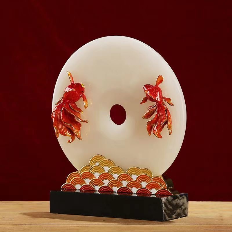 New Chinese enamel color koi natural jade peace button decoration high-end wine cabinet entrance TV cabinet decoration