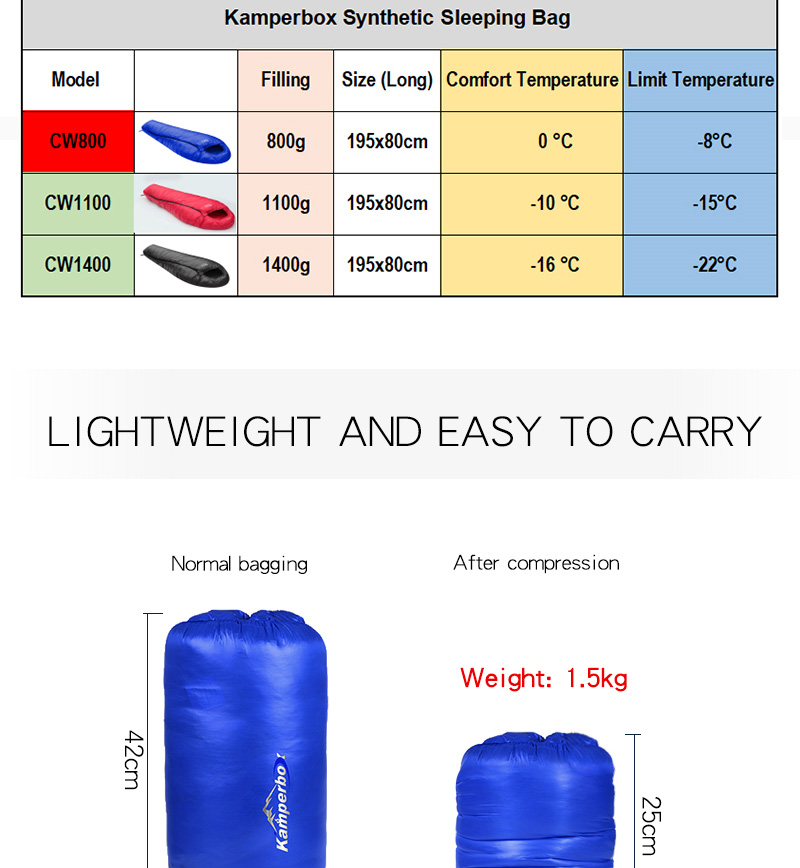 Kamperbox CW800 Winter Sleeping Bag Winter Ultralight Sleeping Bag Winter Camping Equipment