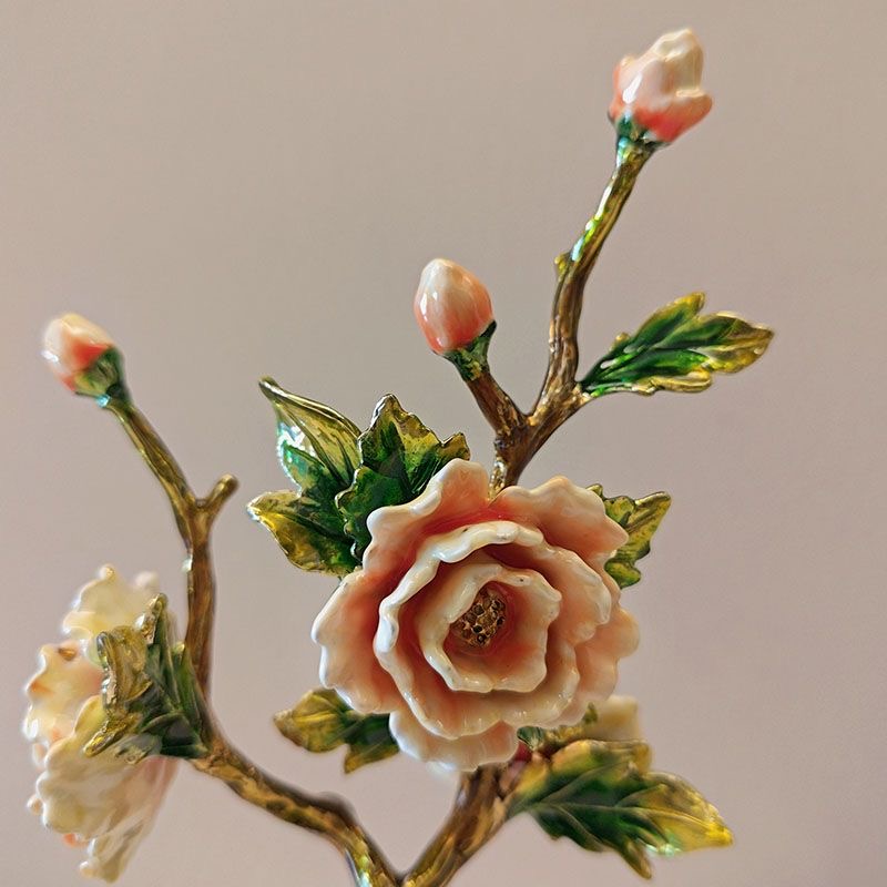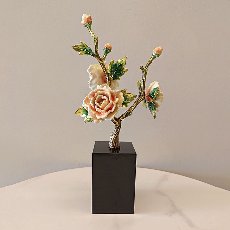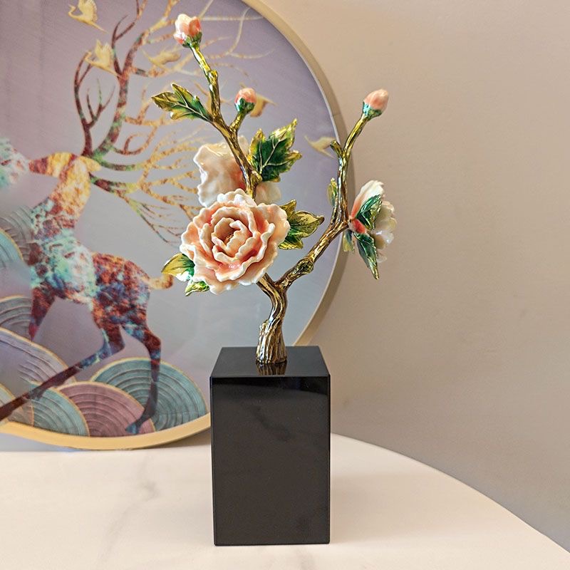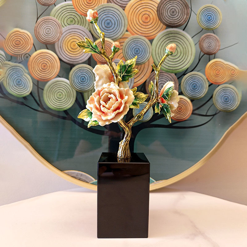 New Chinese high-end light luxury enamel peony TV cabinet porch living room bedroom high-end home decoration