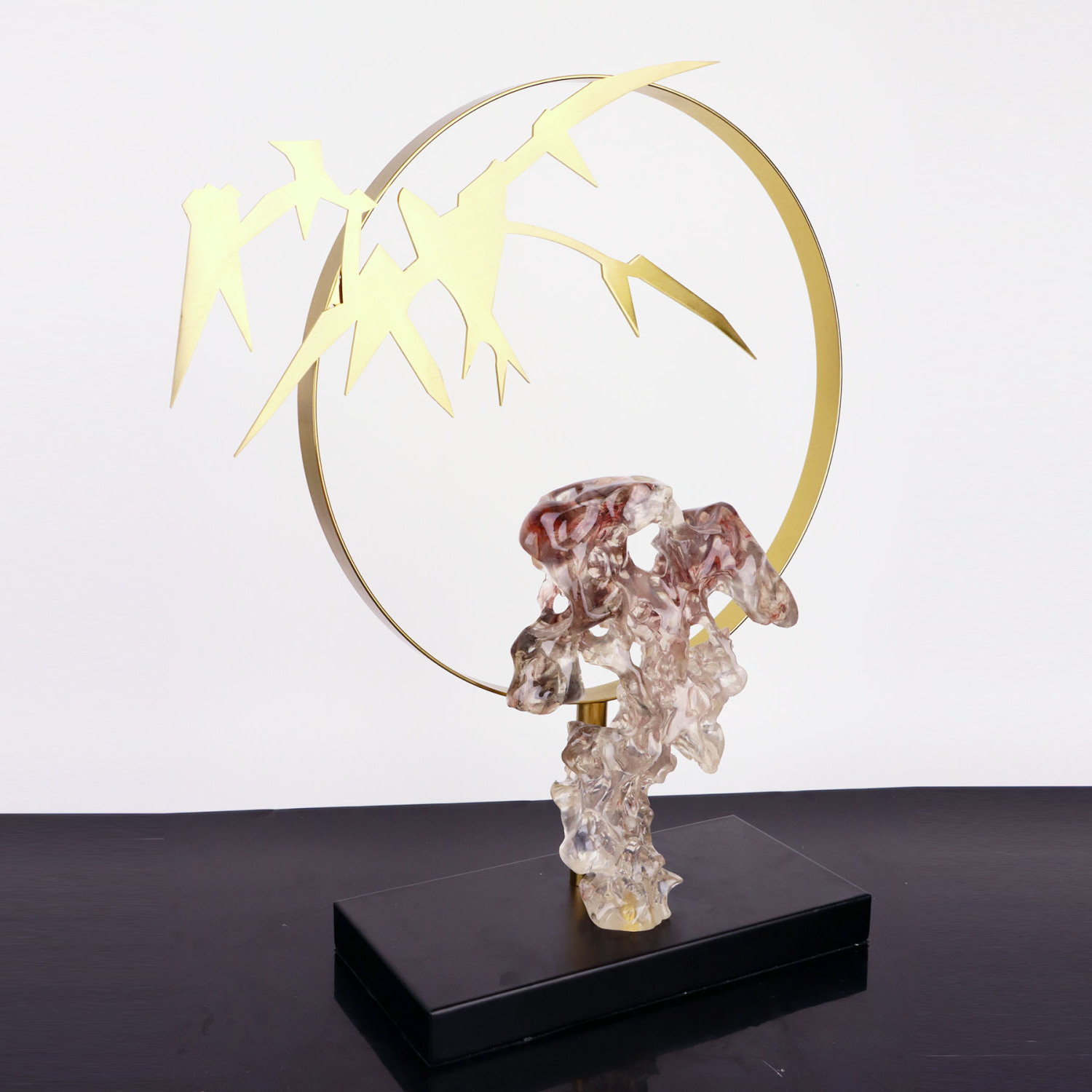 High-grade light luxury bamboo report peace decoration home living room TV cabinet wine cabinet decoration office