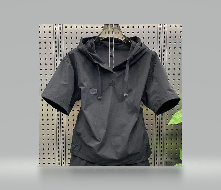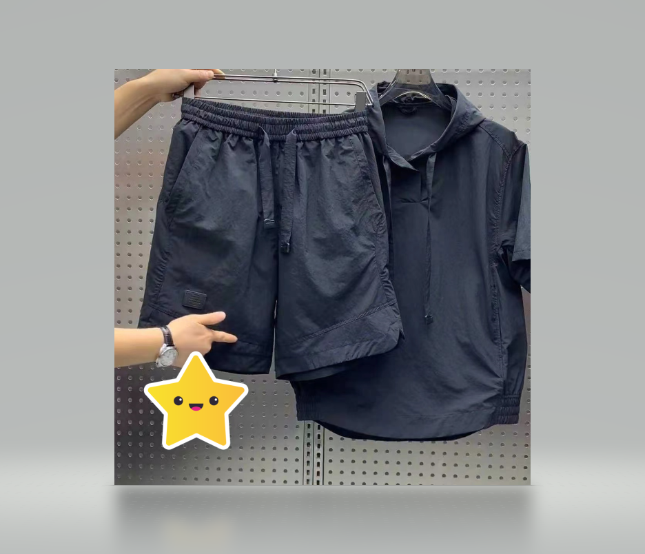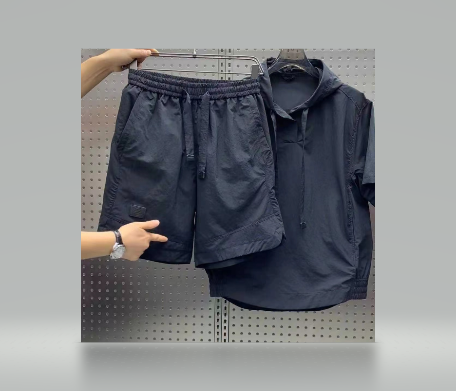 Summer solid color simple casual loose two-piece lightweight breathable sunscreen fashionable men's suit short sleeve shorts set