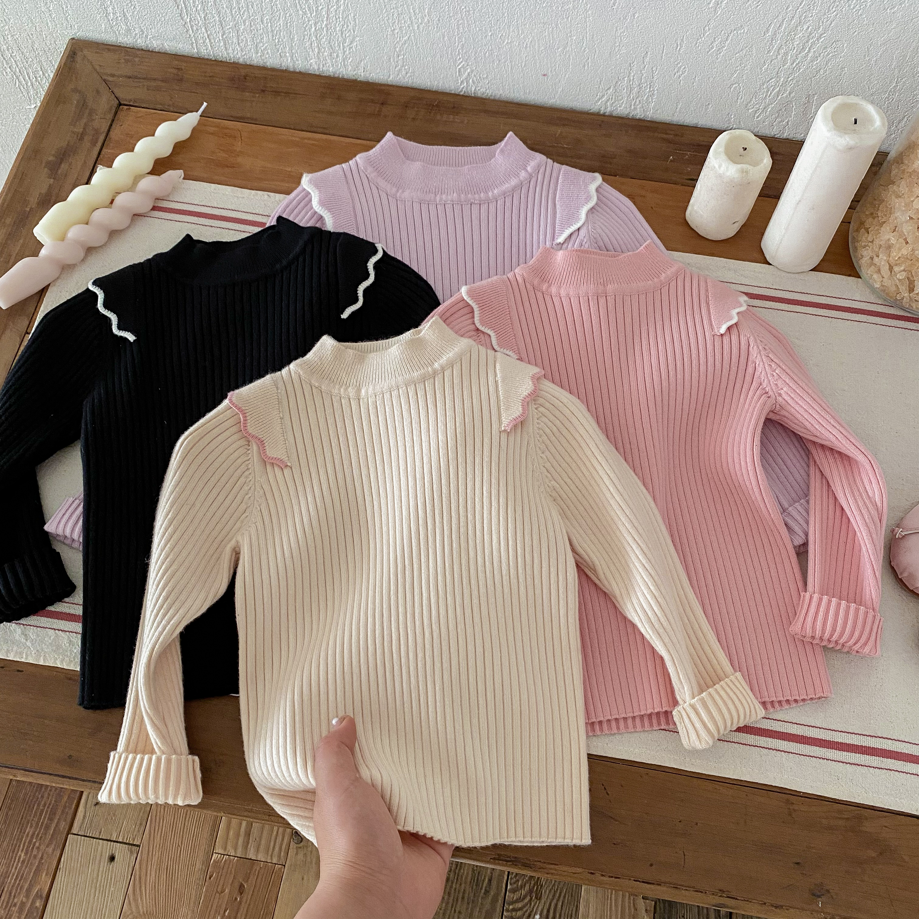 Children'S Turtleneck Knitwear Girls' Jacquard Sweater In Autumn And Winter For Baby Clothes HT214