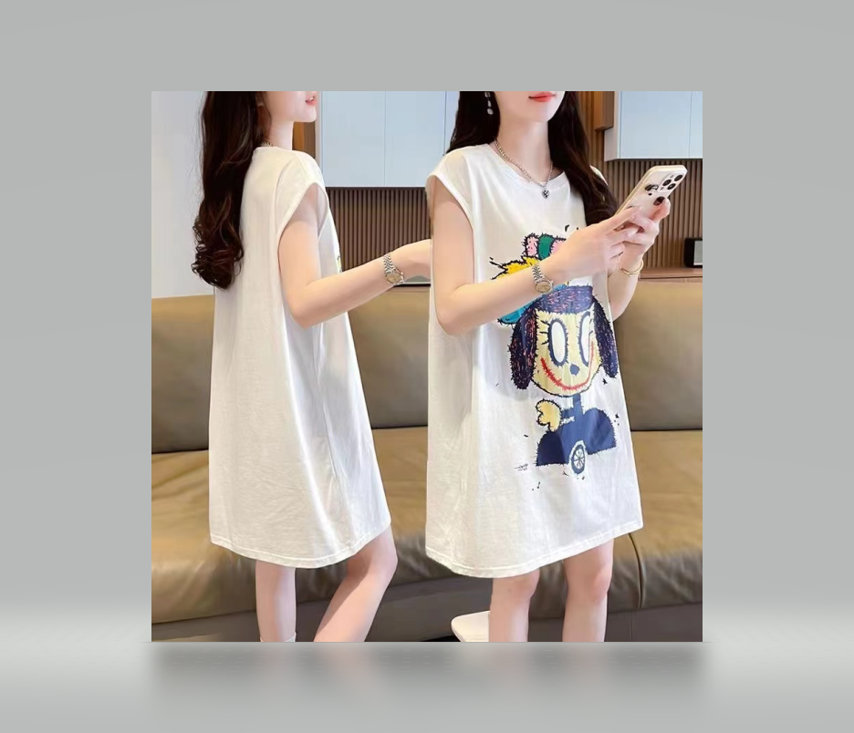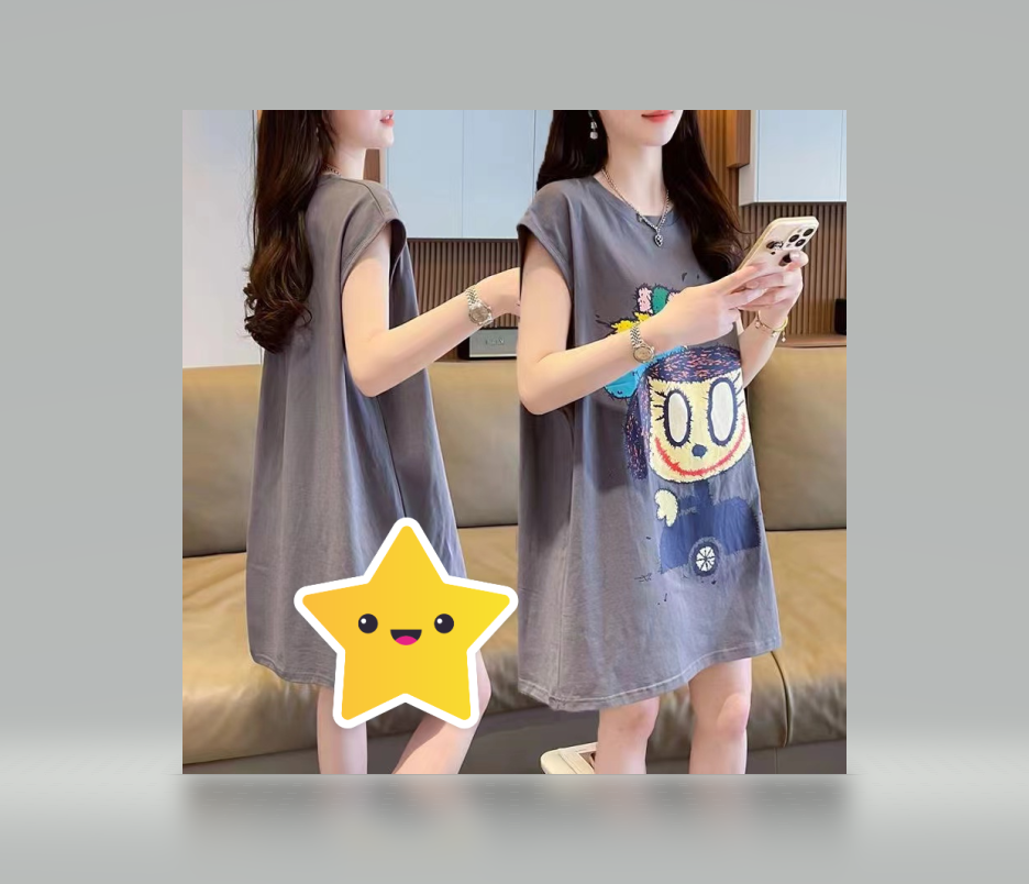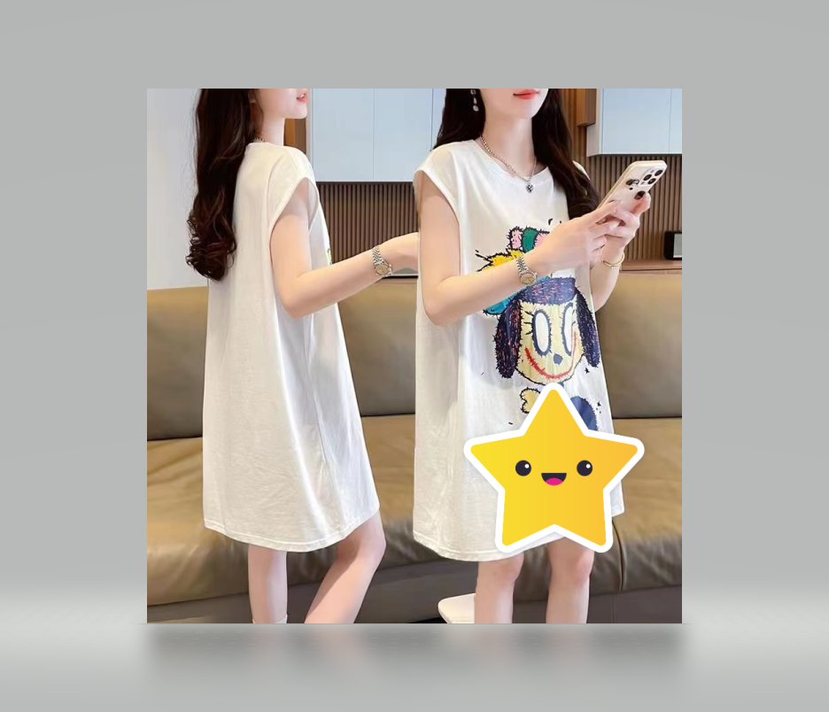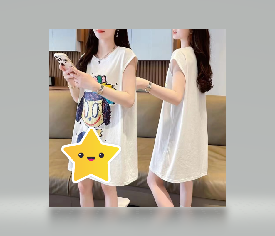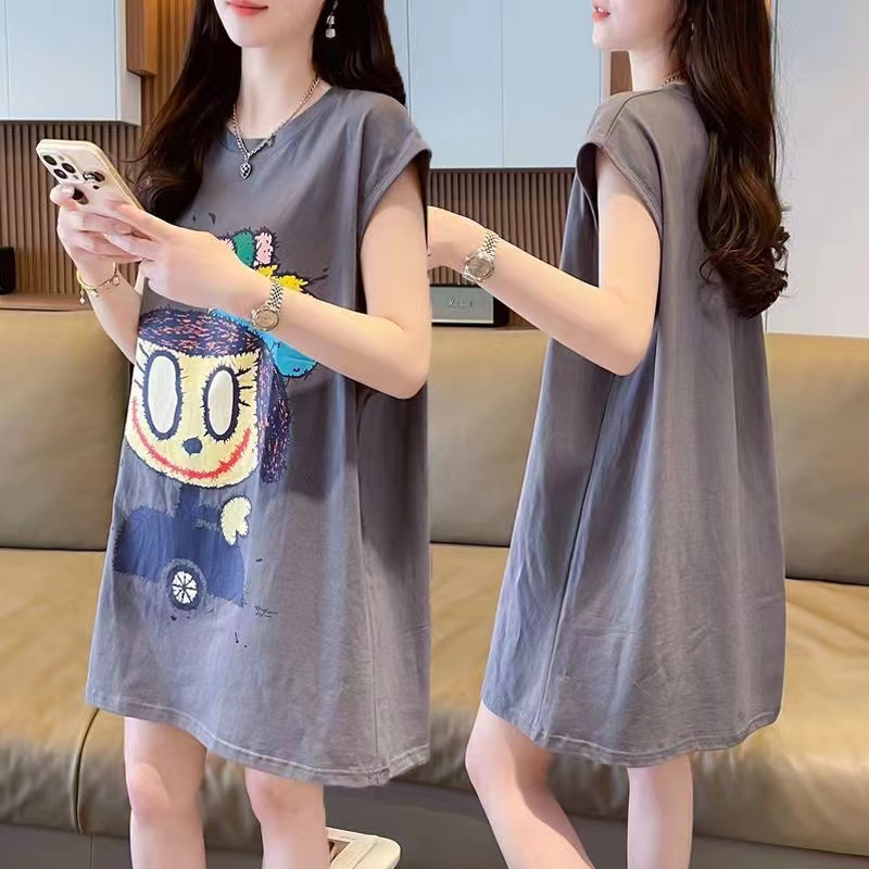 Summer medium length sleeveless vest nightdress women cartoon pajamas loose Korean version of home wear can be worn fashionable
