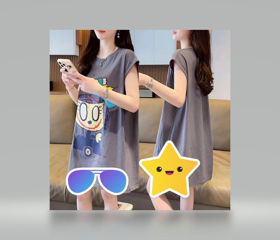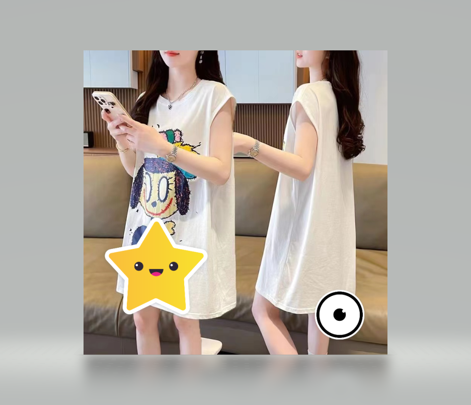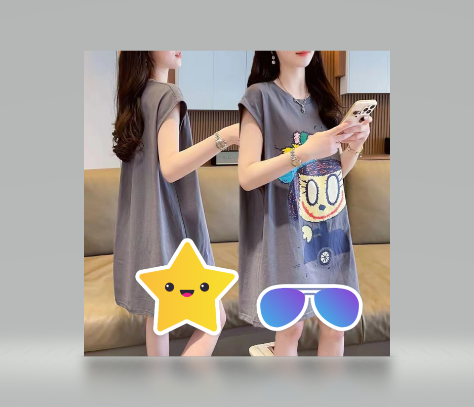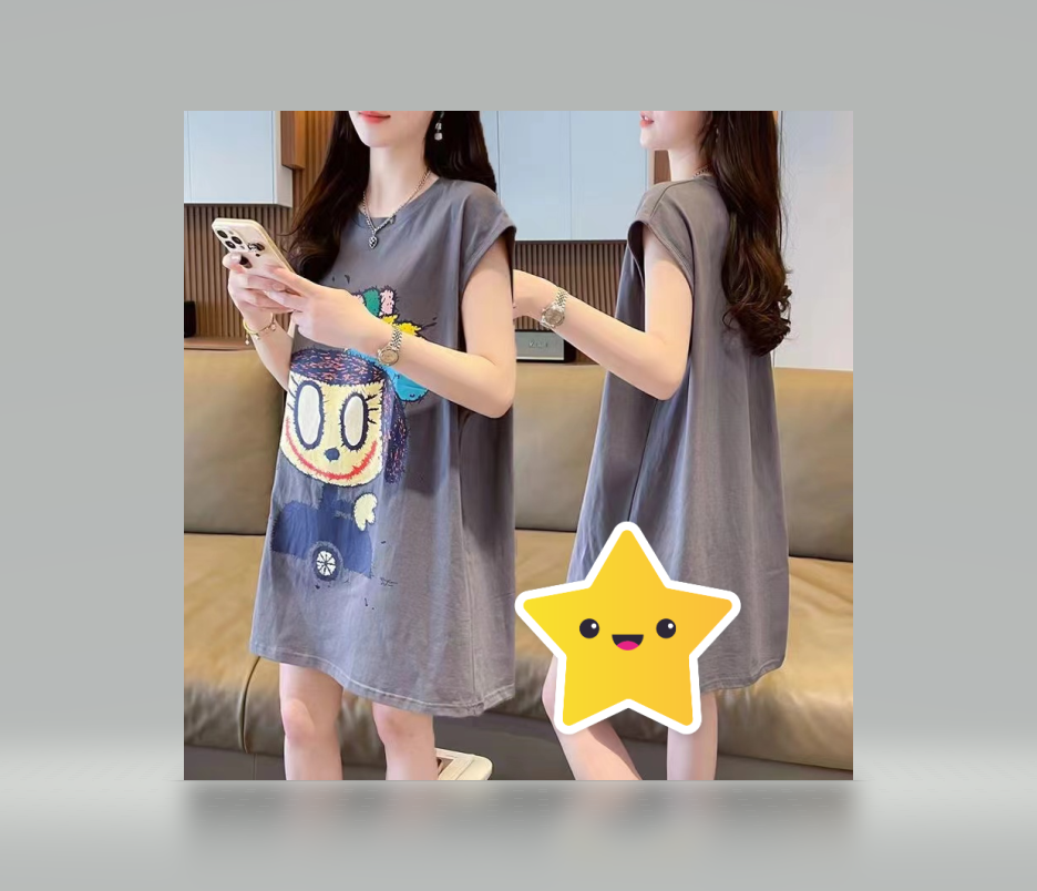 Summer medium length sleeveless vest nightdress women cartoon pajamas loose Korean version of home wear can be worn fashionable