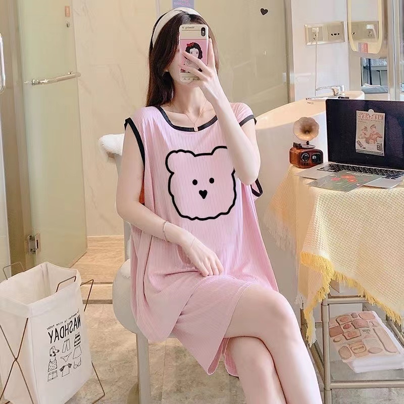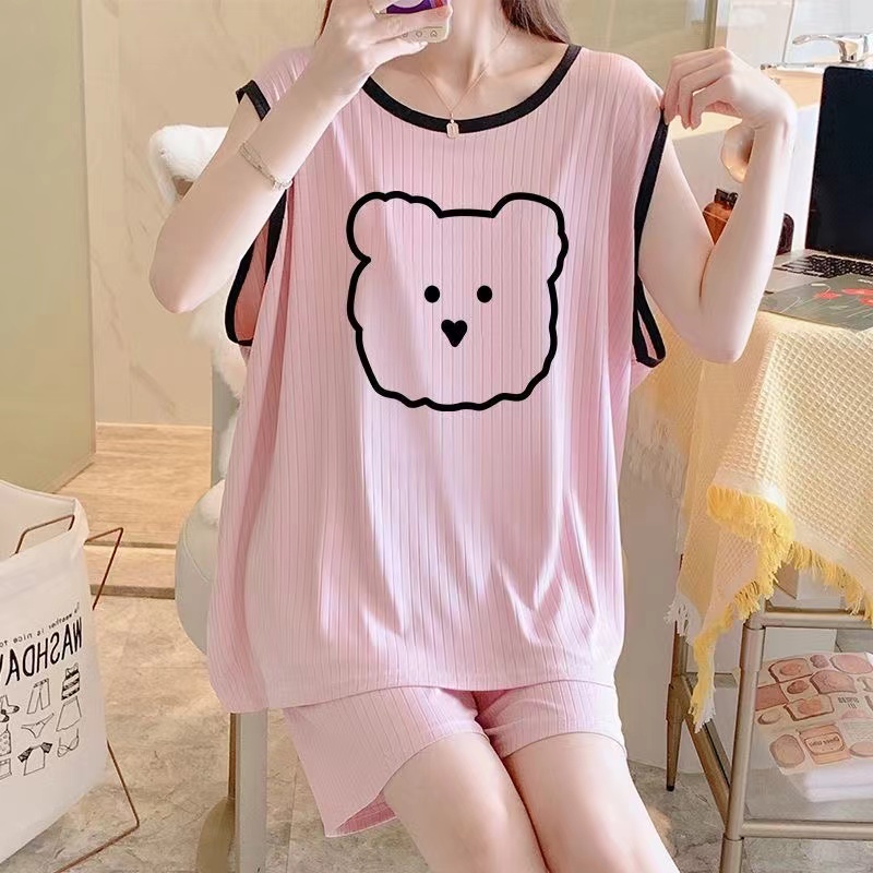 pajamas female summer ice silk vest two-piece cartoon bear