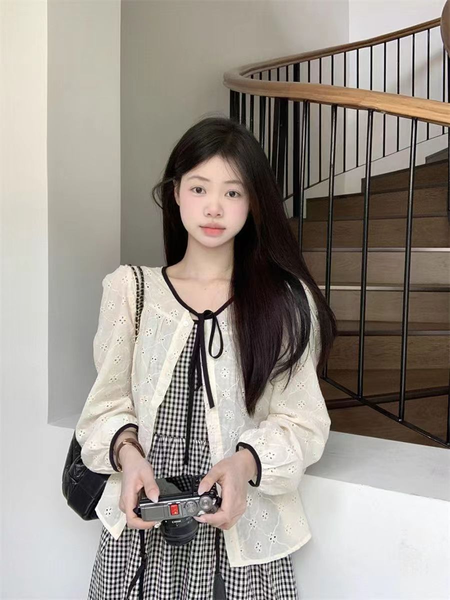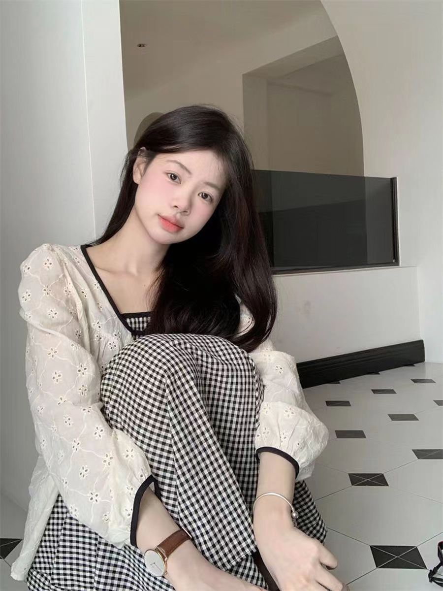 French sweet mori tie with folded halter dress women's two-piece summer lace short-sleeved blouse dress set