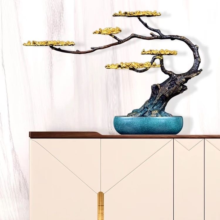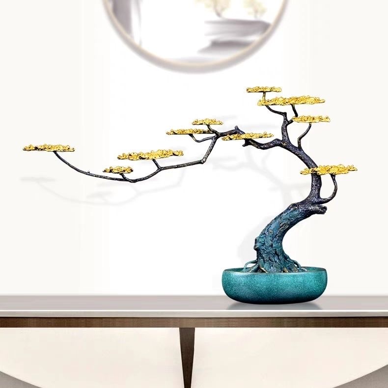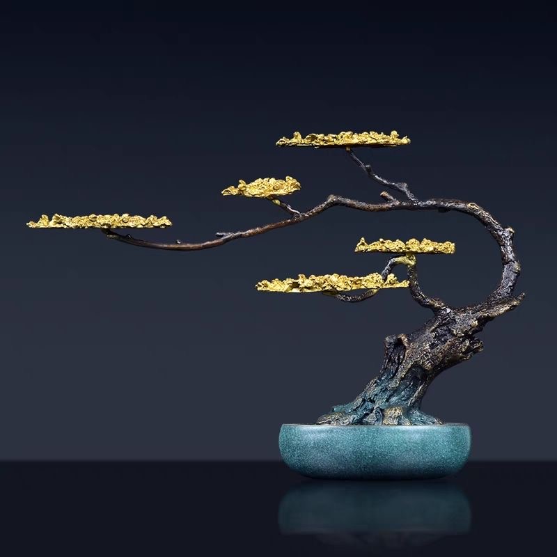 Welcoming pine ornaments all copper handicrafts Copper pine living room fortune bonsai ancient tree new Chinese style porch copp