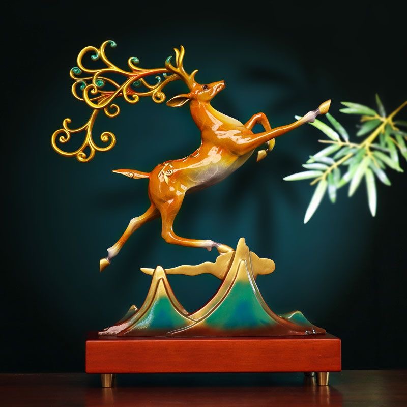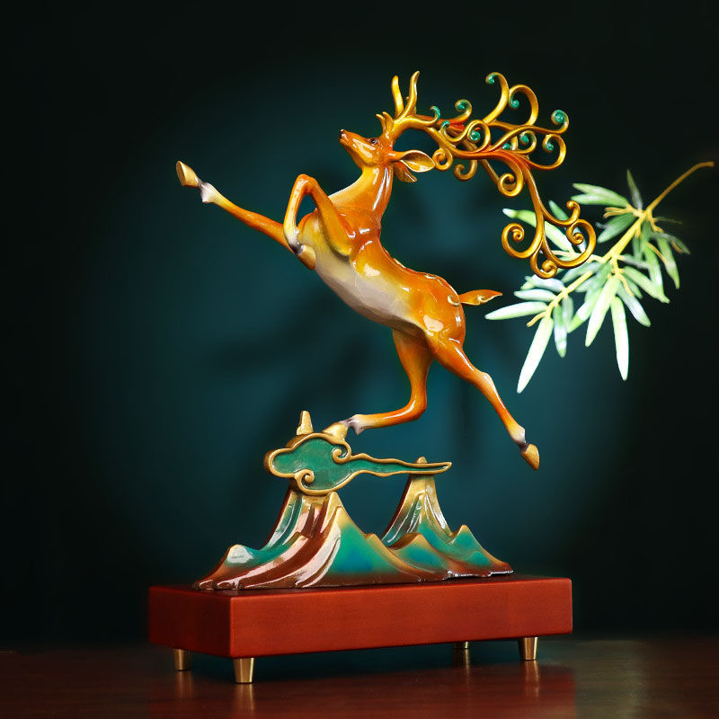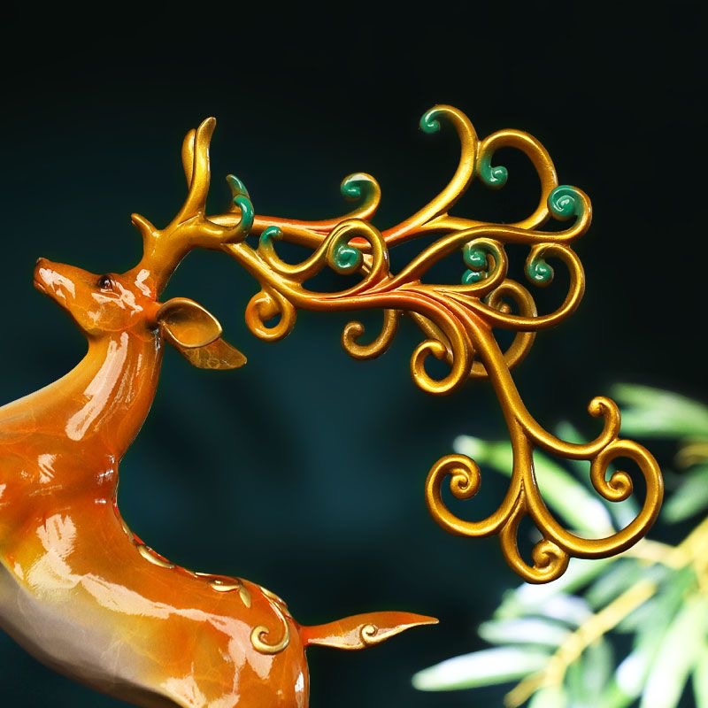 Copper deer decoration Zhaocai office living room entrance wine cabinet decoration high-end company housewarming new home openin