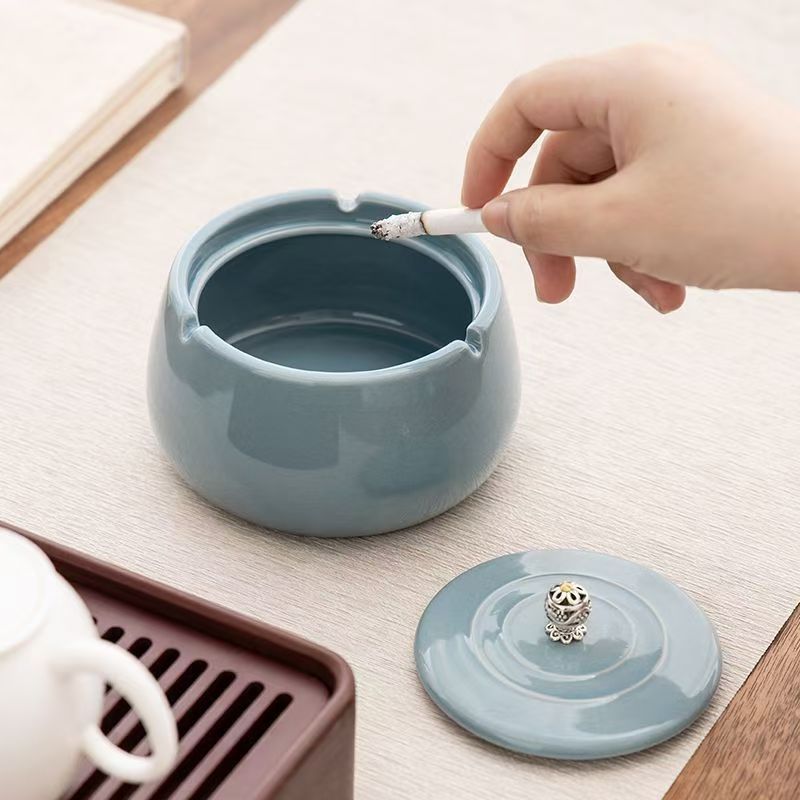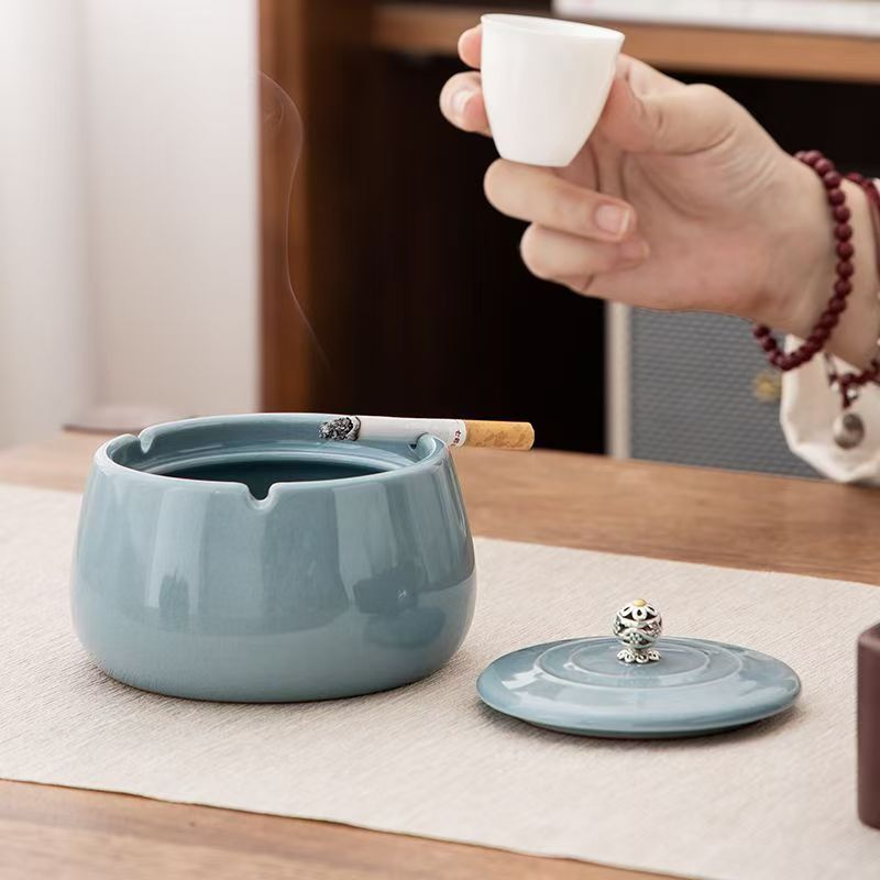 Ashtray Creative office Fashion with cover trend fly-proof ashtray hotel home Chinese personality ceramic living room
