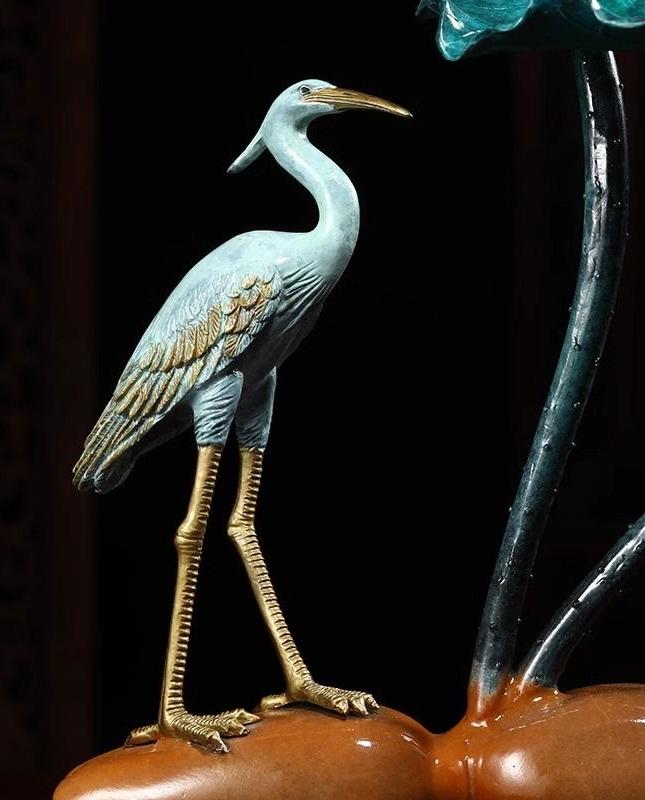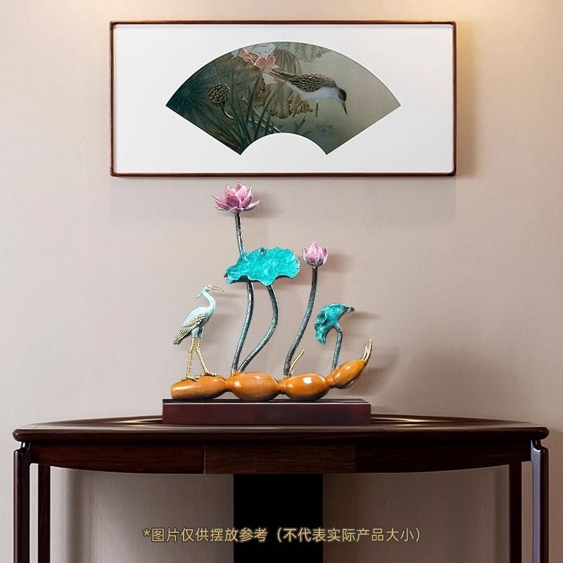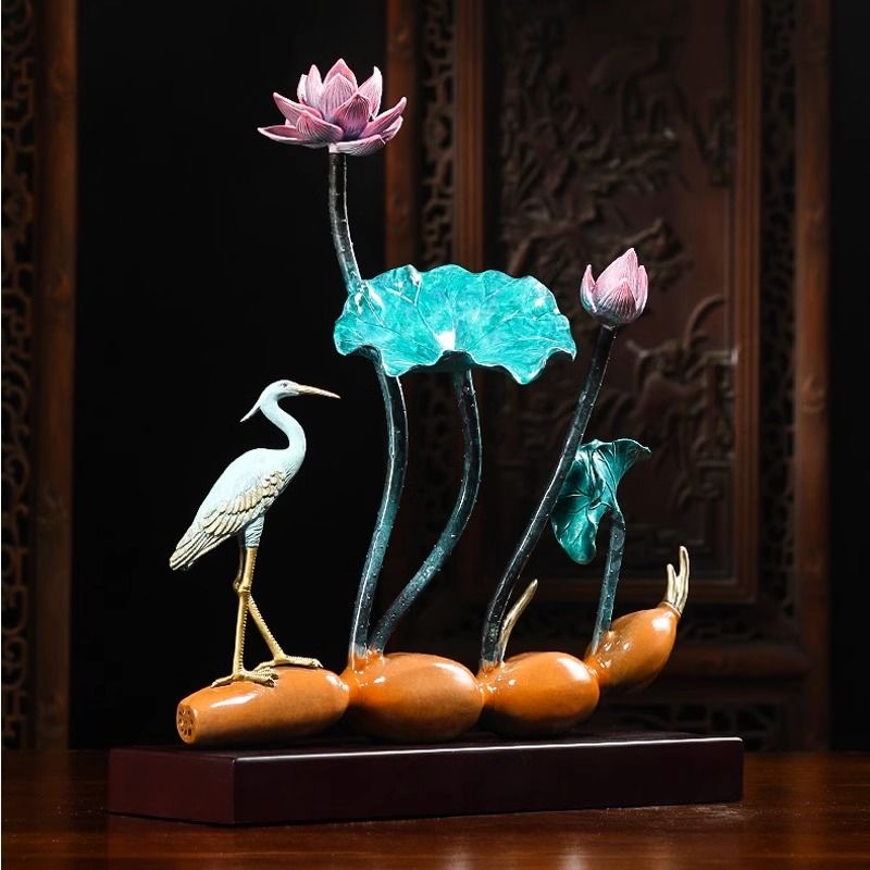 Chinese net red color bronze crane lotus decoration home living room porch office desktop decoration housewarming gift