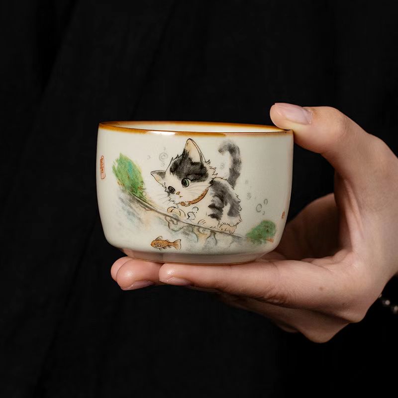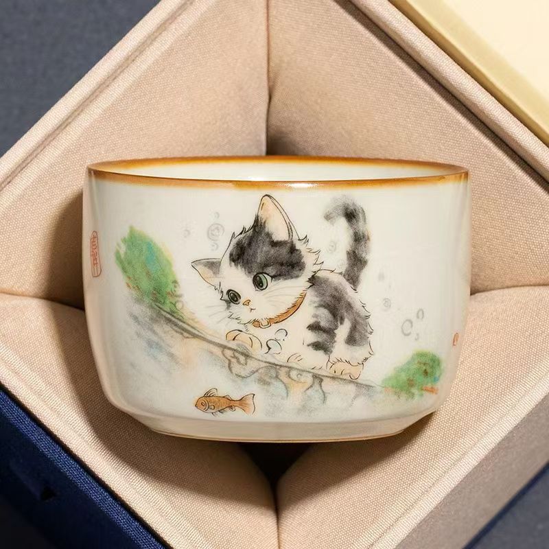 Ruyao cat owner cup high-grade personal special kung fu tea cup tea set sample tea cup single custom tea cup