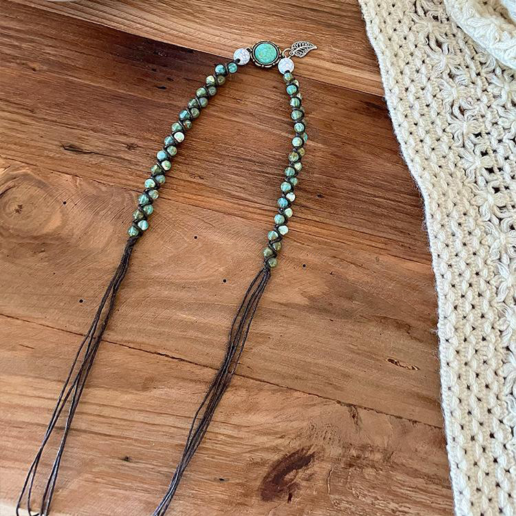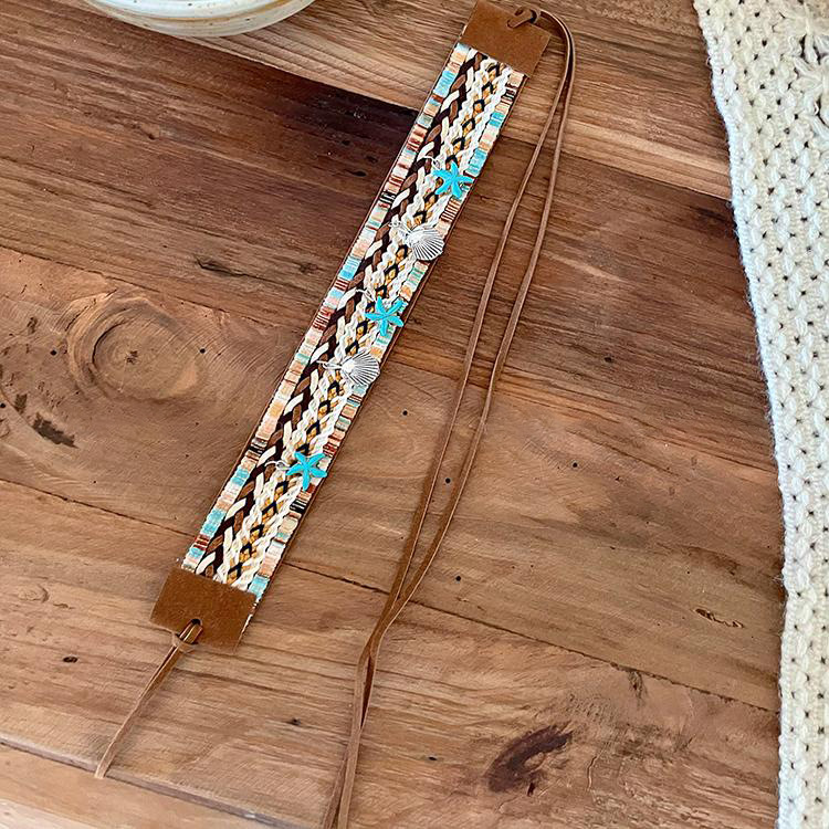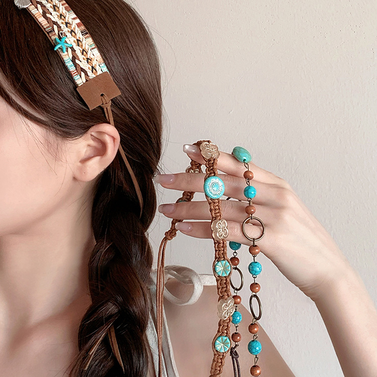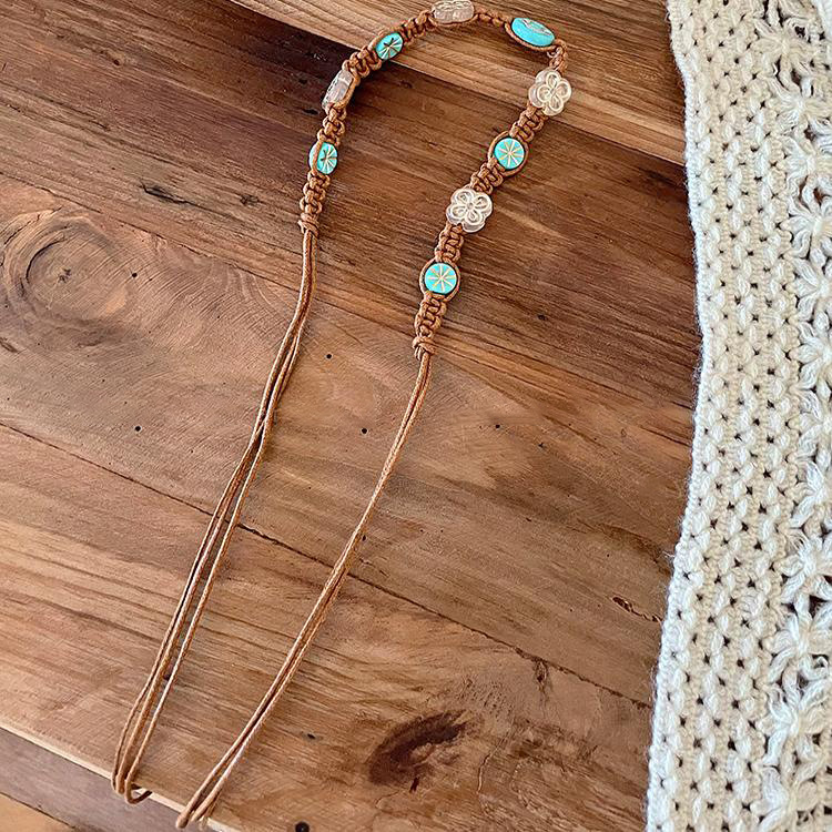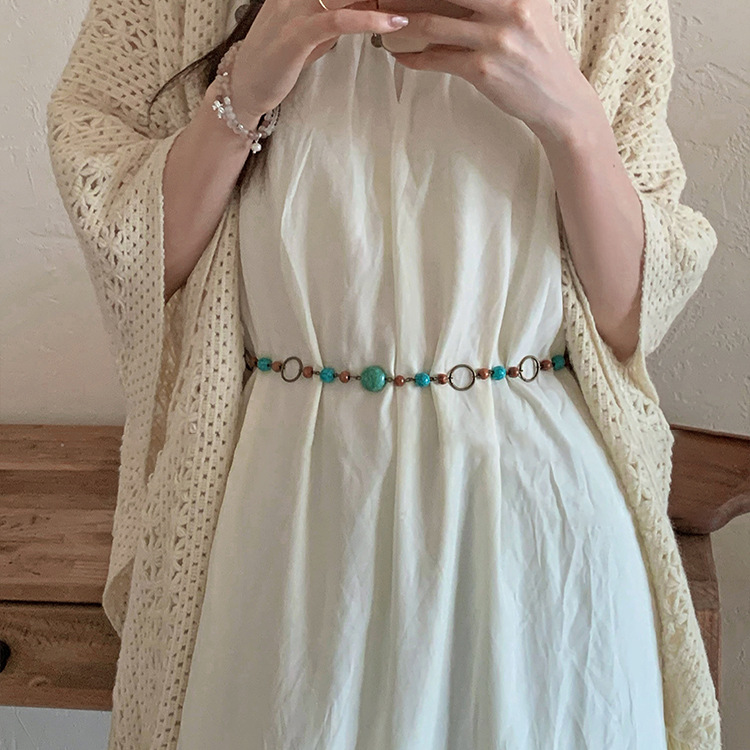 Natural stone coffee mesh braid hair band Hair accessories Bohemian ethnic style dress waist chain belt accessories