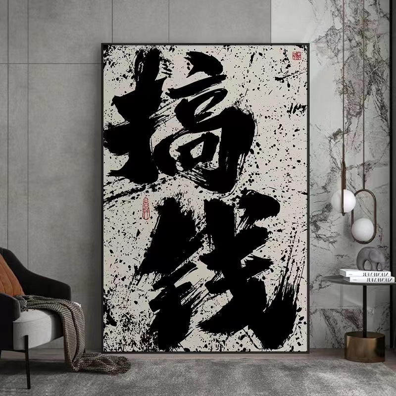 Chinese style calligraphy and painting minimalist bedroom background wall decoration painting Office bar porch art meditation ha