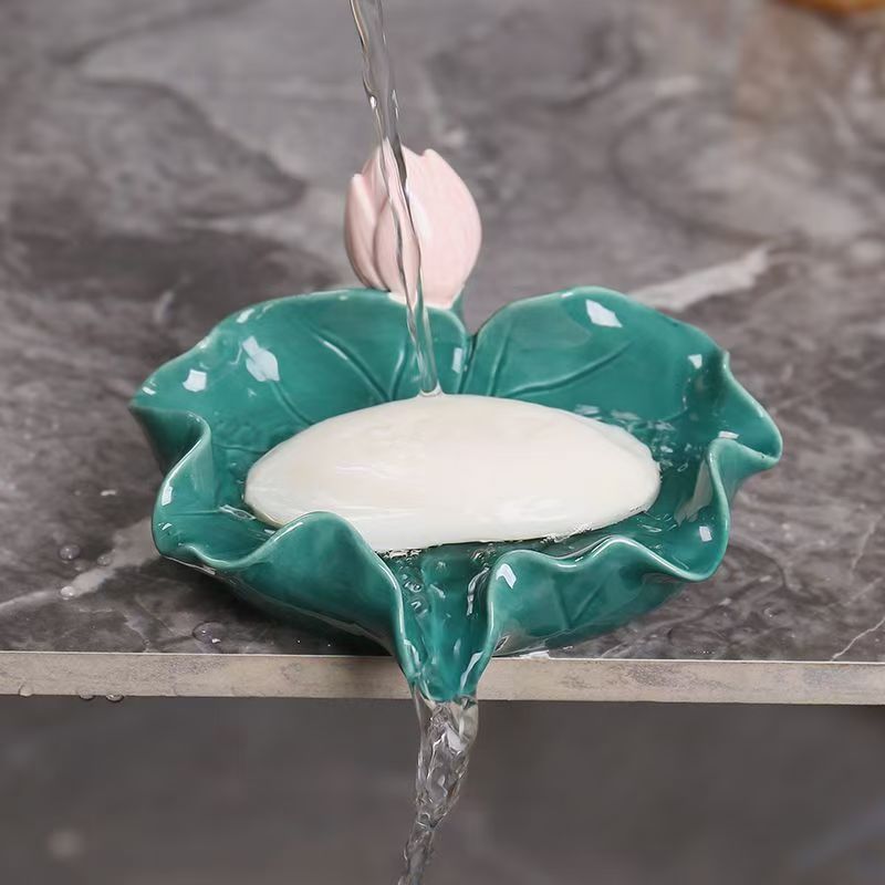 Ceramic soap box drain household lotus soap box High-end sink soap dish Creative bathroom storage rack