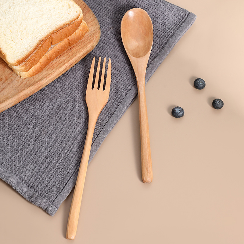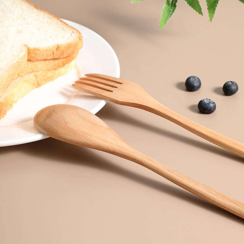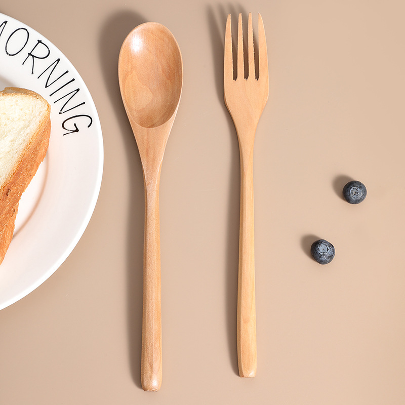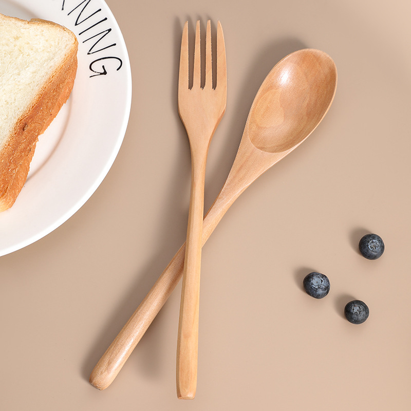 Lotus spoon fork Wooden tableware fruit fork unpainted solid wood spoon fork