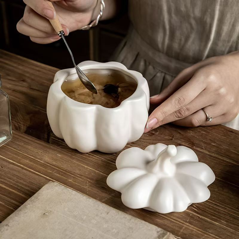Single ceramic soup pot Steamed eggs bird's nest stew bowl with lid pumpkin bowl