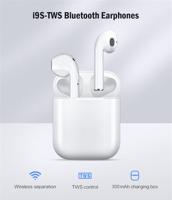 i9s Wireless Earbud Mini Cool Design Headphone with Charger Case Hook for mobile