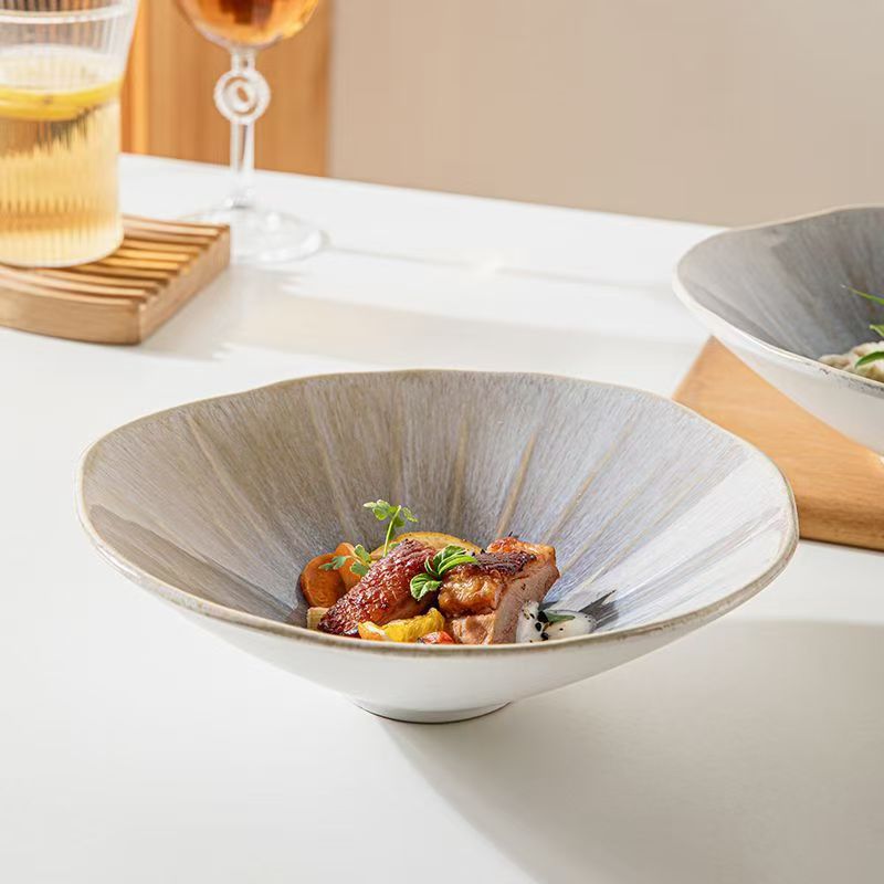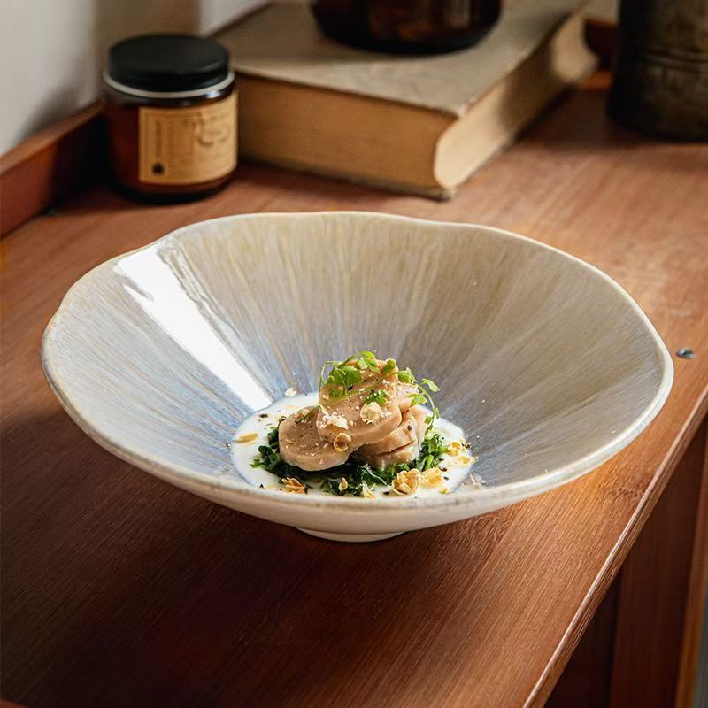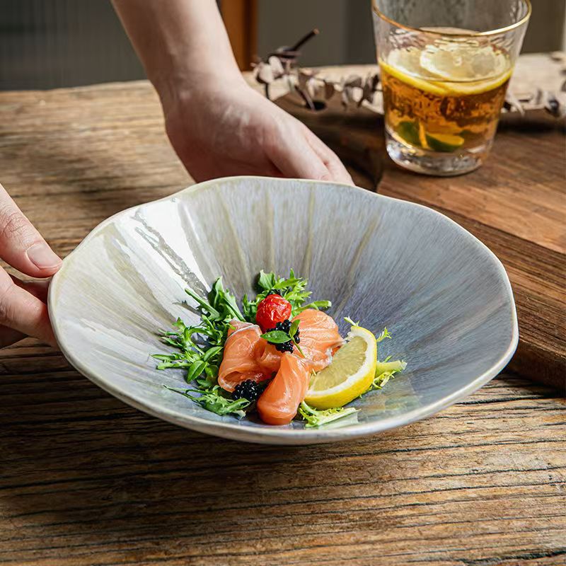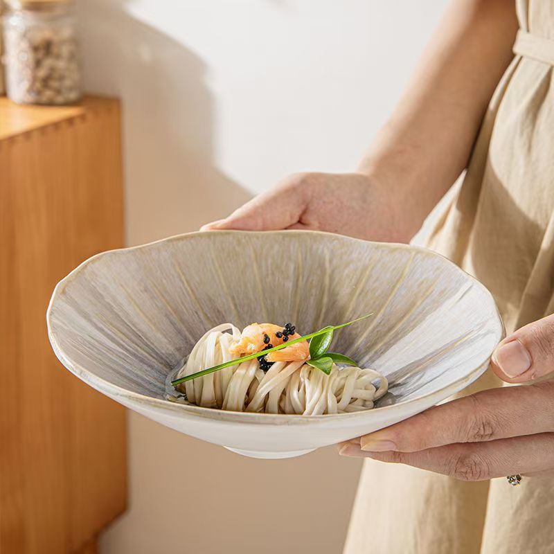 Irregular salad bowl ceramic bamboo hat bowl club mood dish bowl