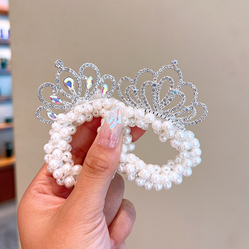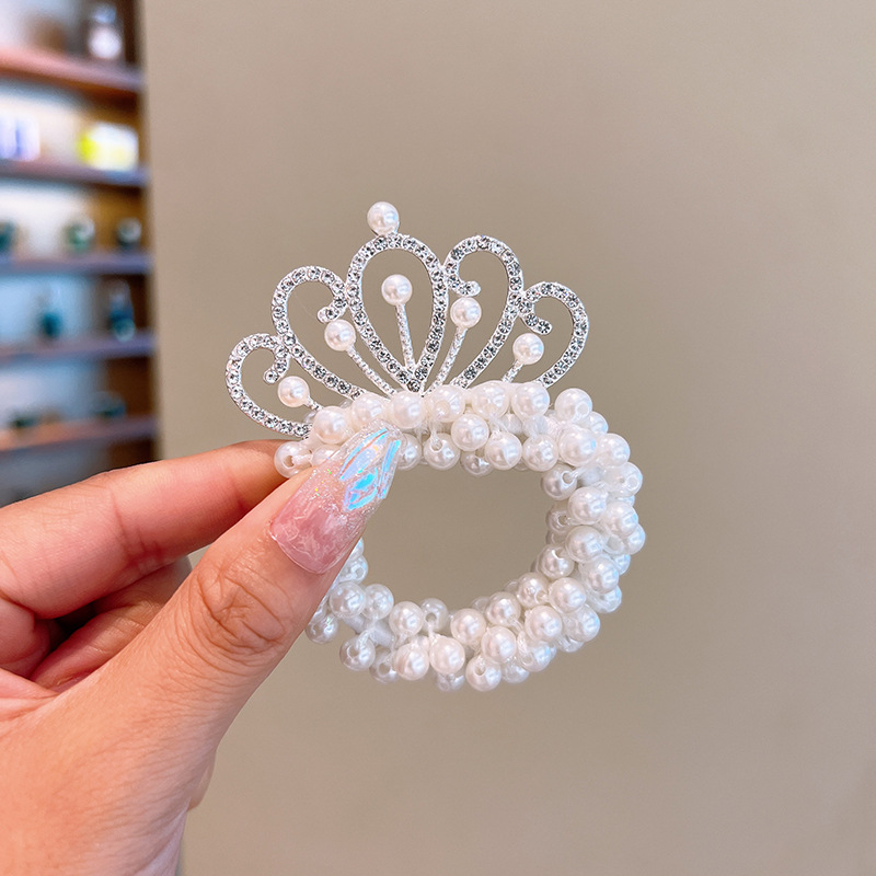 Children's Crown Pearl scrunchie Princess Headdress beaded beaded headstring Girl bun head Artifact Rubber band Headflower