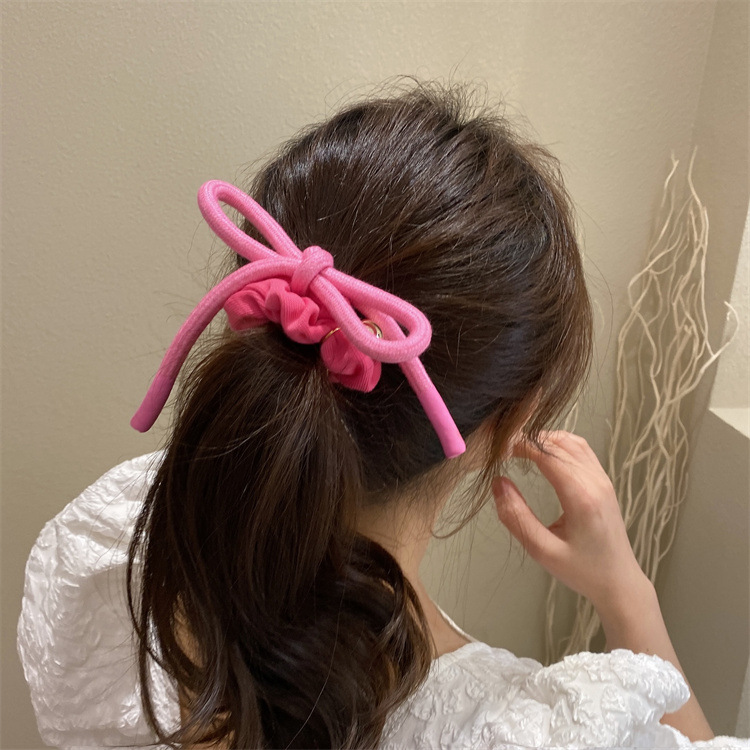 Cute pink bow headstring large colon scrunchie leather band women's hair tie new ponytail hair rope headwear