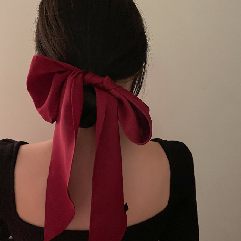 Romantic atmosphere French elegant solid color narrow fairy temperament superior sense tied hair streamers