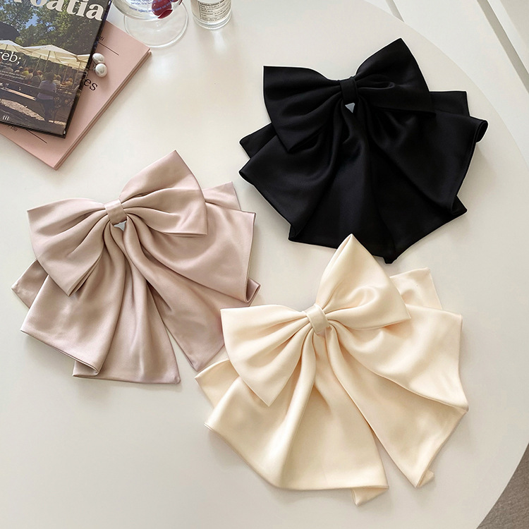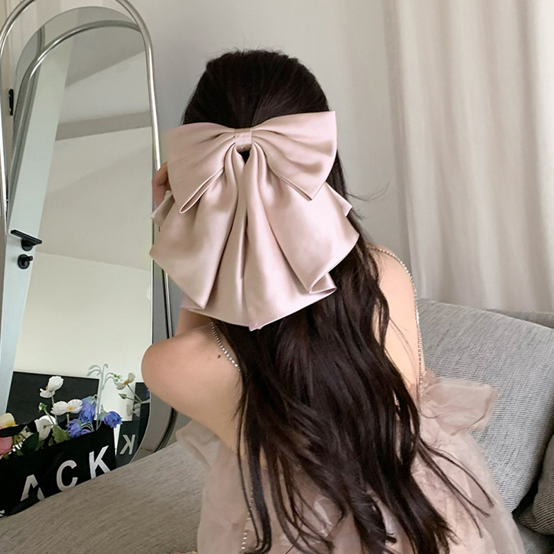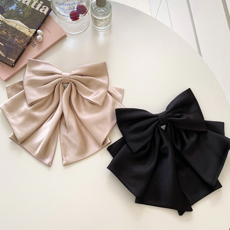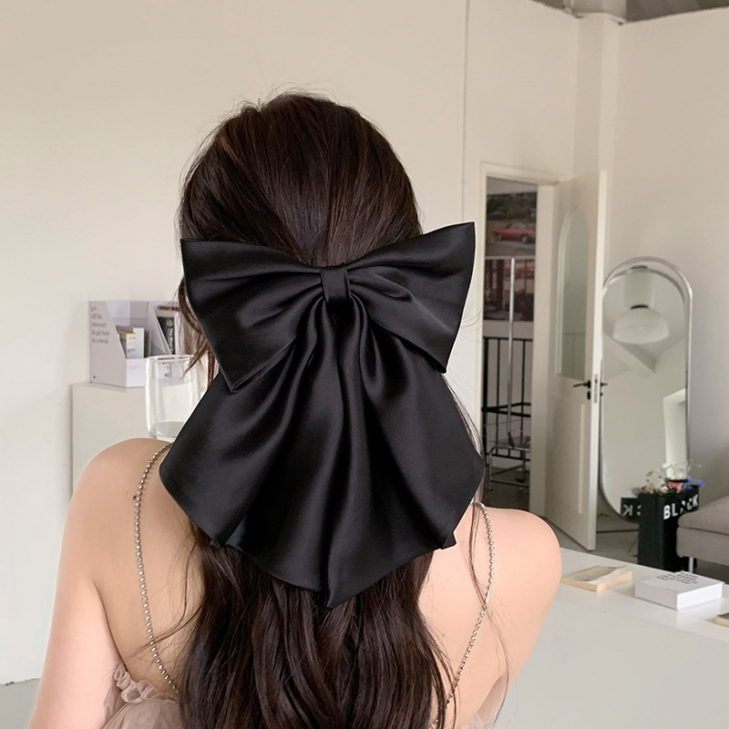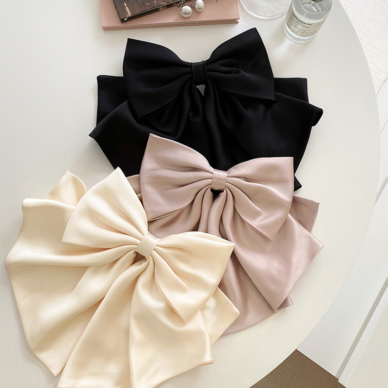 French oversized bow hair clip Satin high quality rear head spring clip new design hair accessories