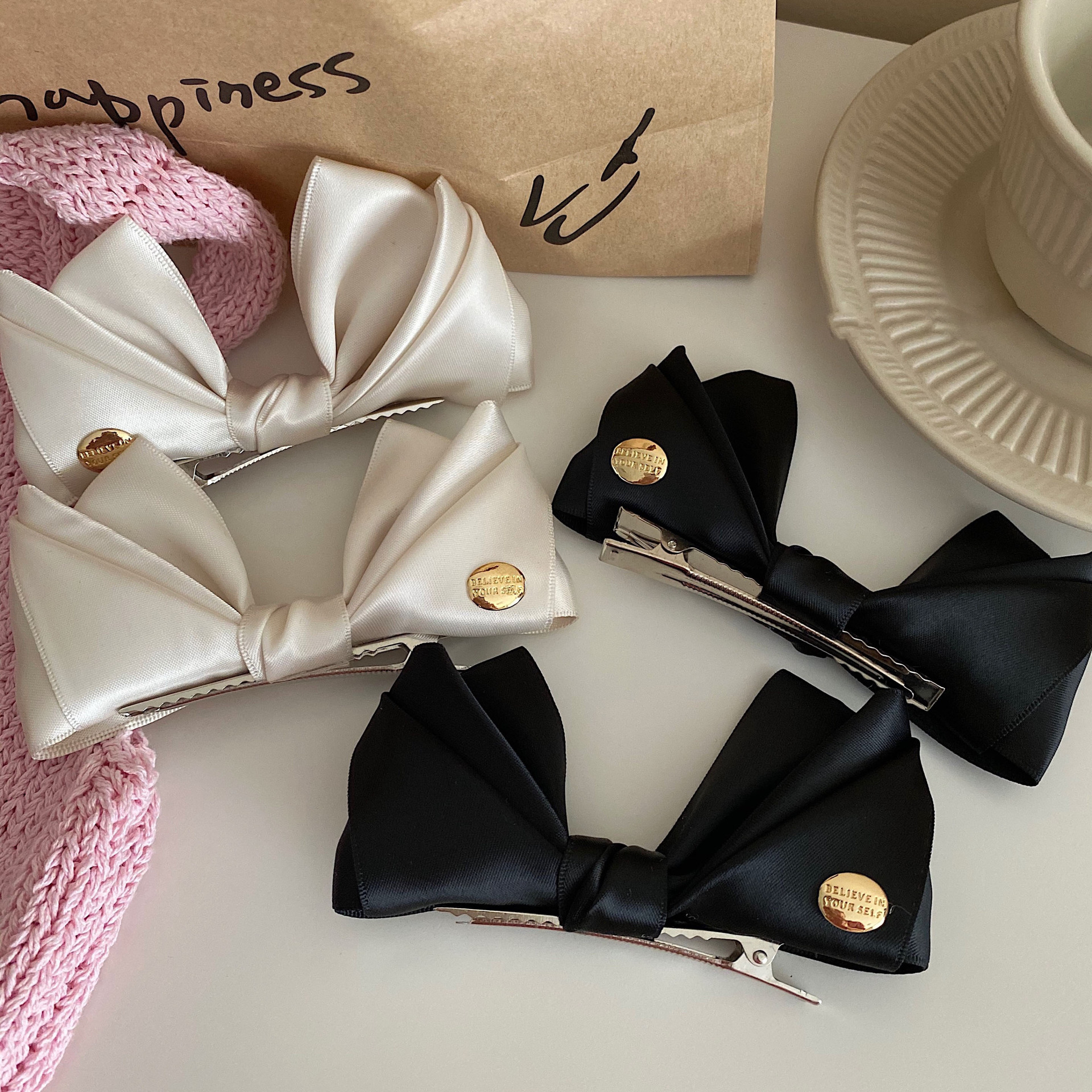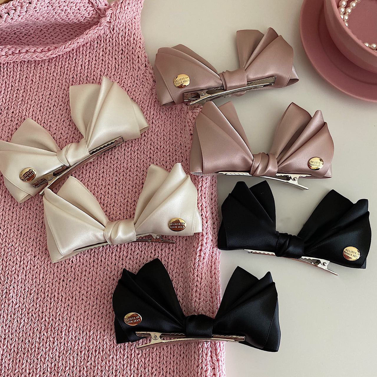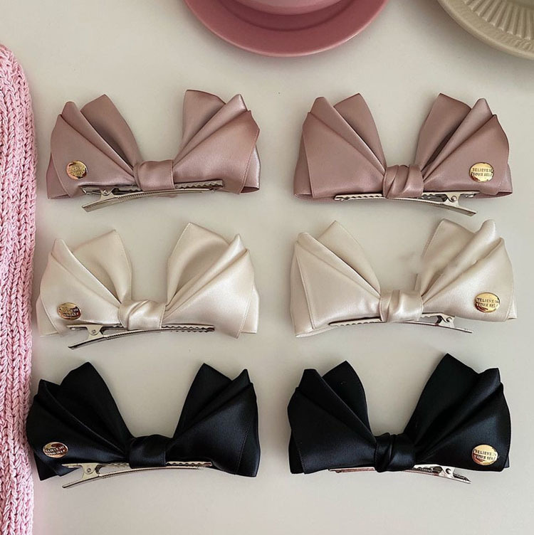 Premium three-dimensional satin bow hair clip Sweet fringe side clip