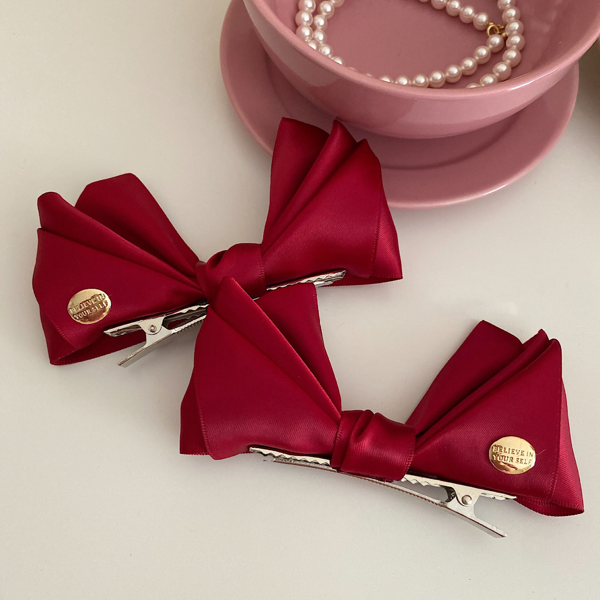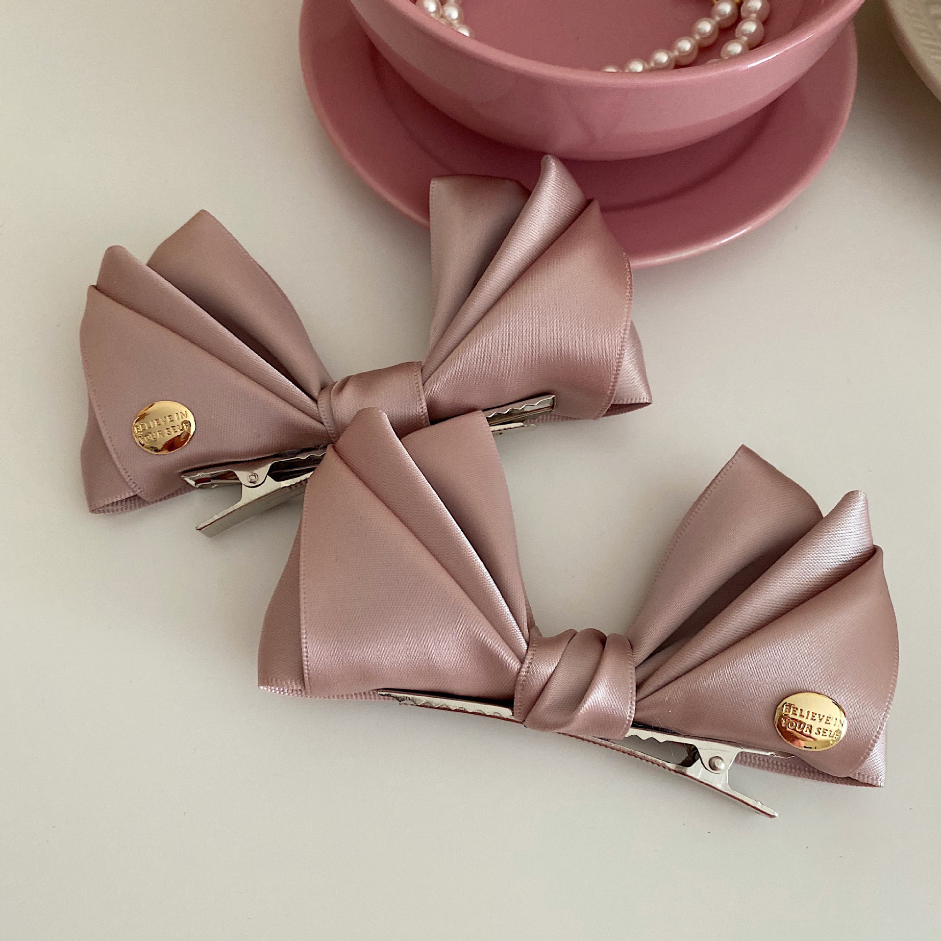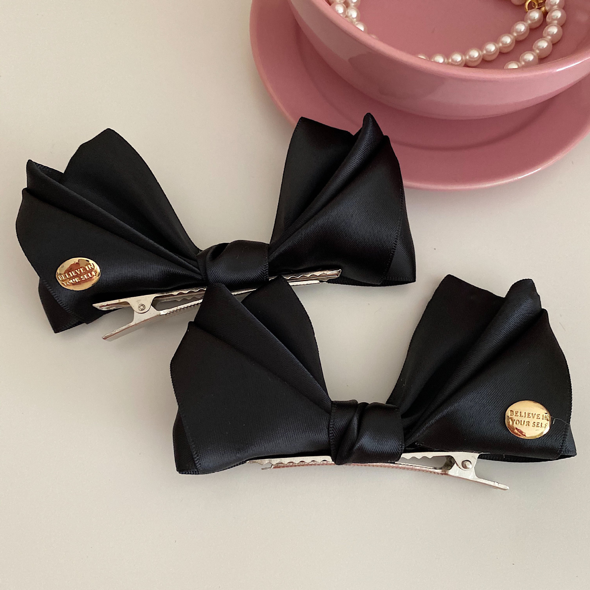 Premium three-dimensional satin bow hair clip Sweet fringe side clip
