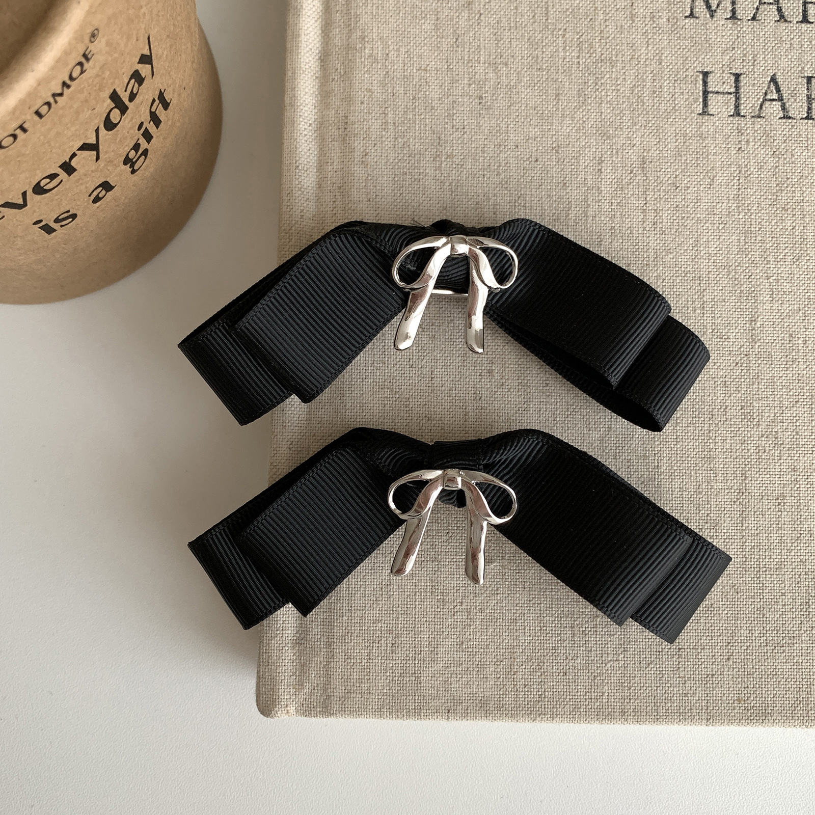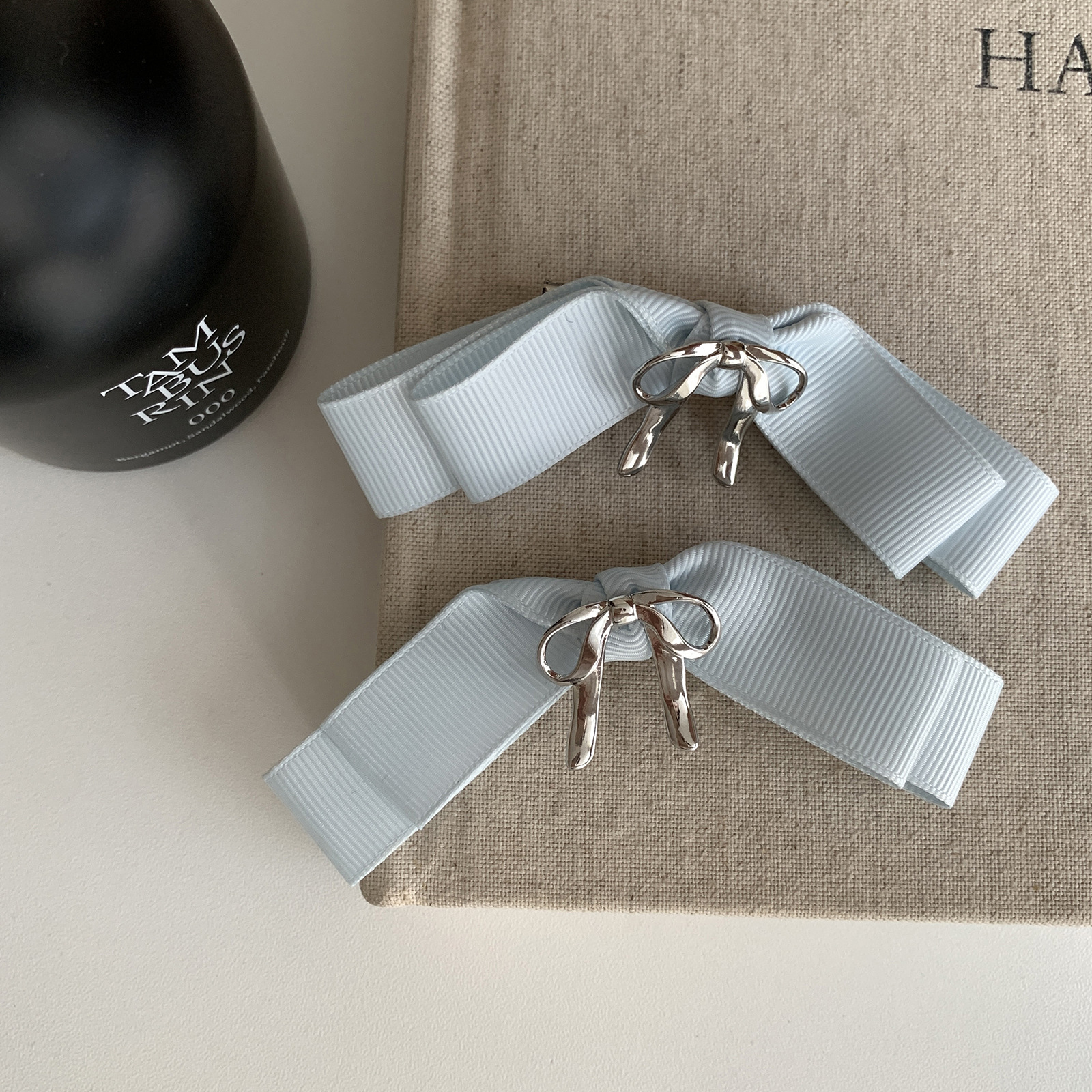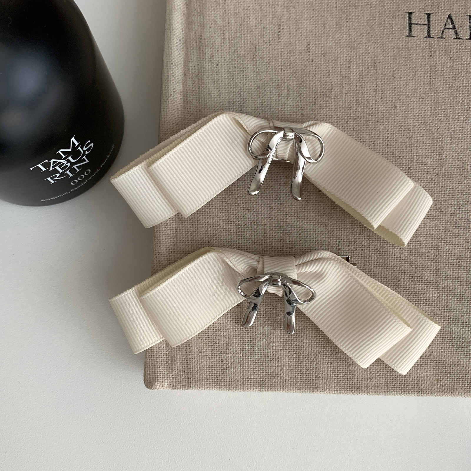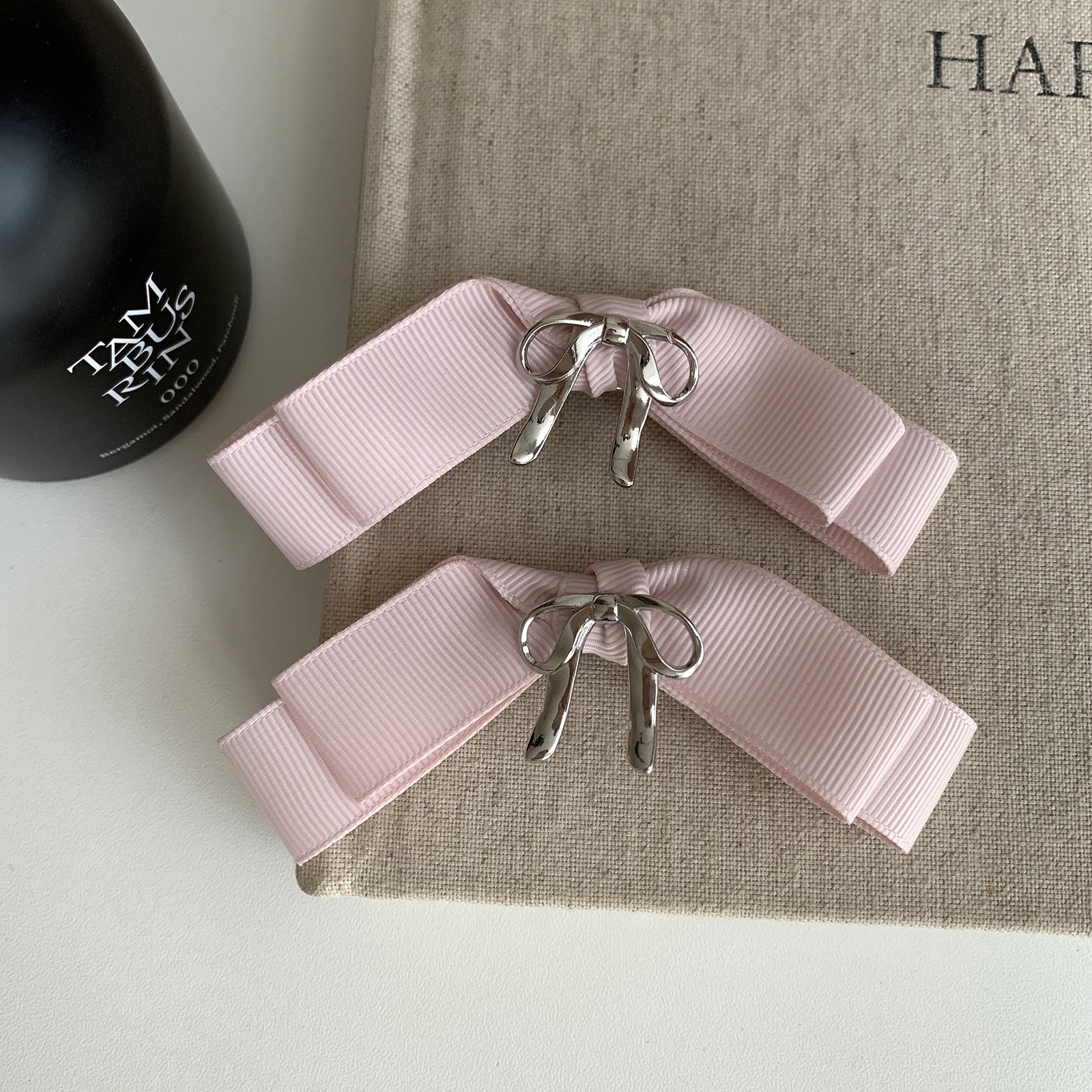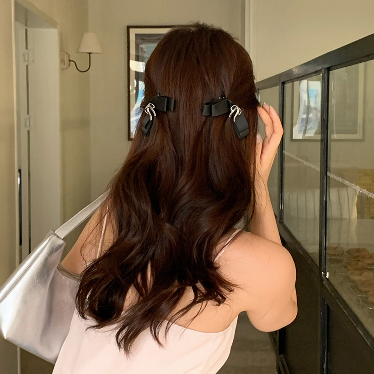 French sea salt Sweet metal bow hair clip Women's back half hair clip Side fringe clip headpiece