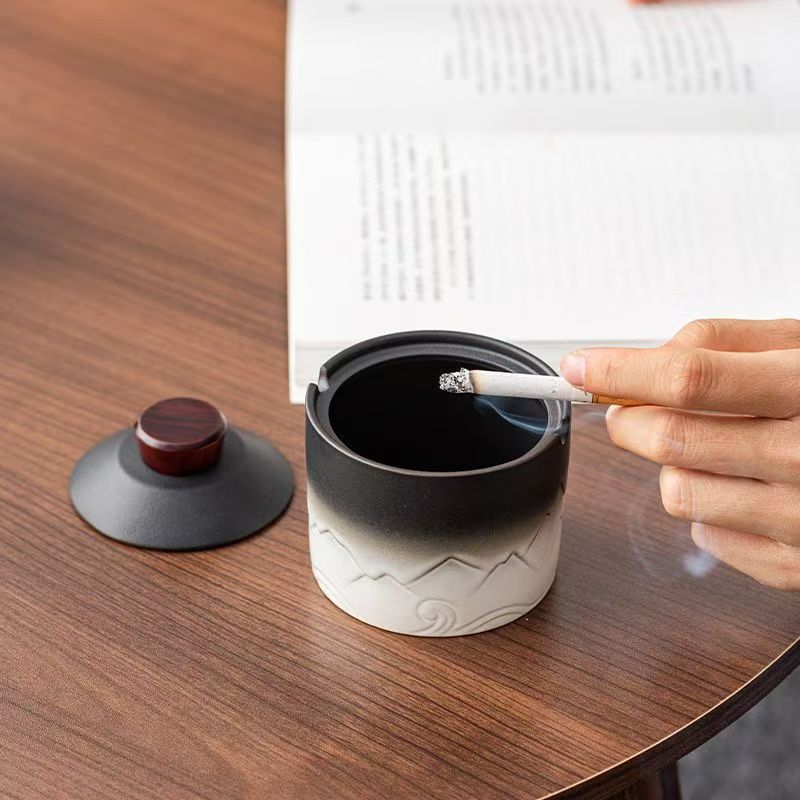 Ceramic ashtray national style creative personality trend office living room home with cover fly ash