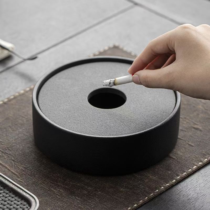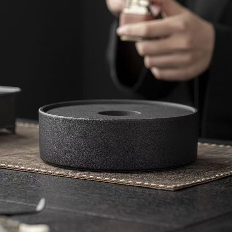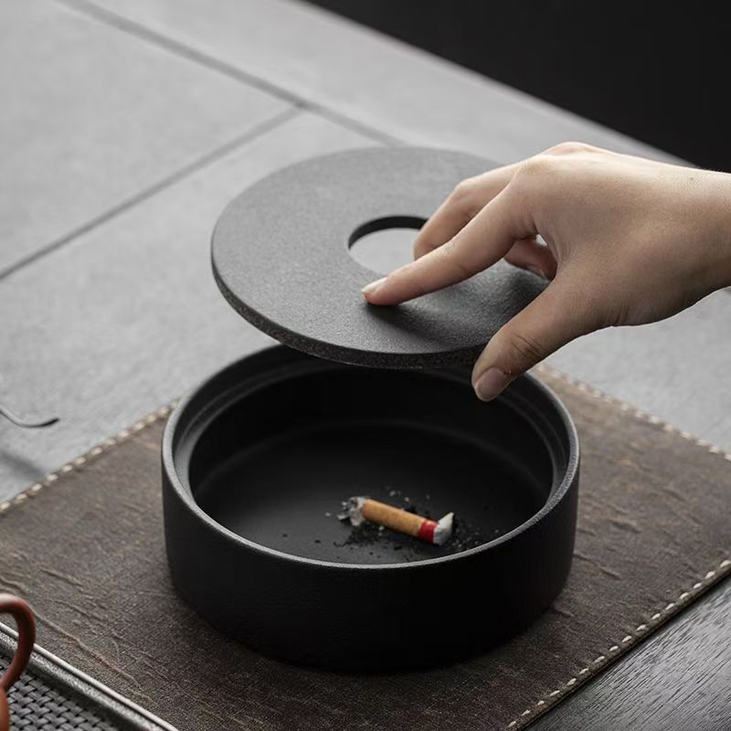 Holy collection coarse pottery round ashtray Household living room smoke pot with cover fly ash proof Chinese large ashtray