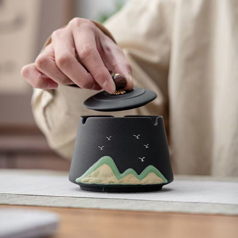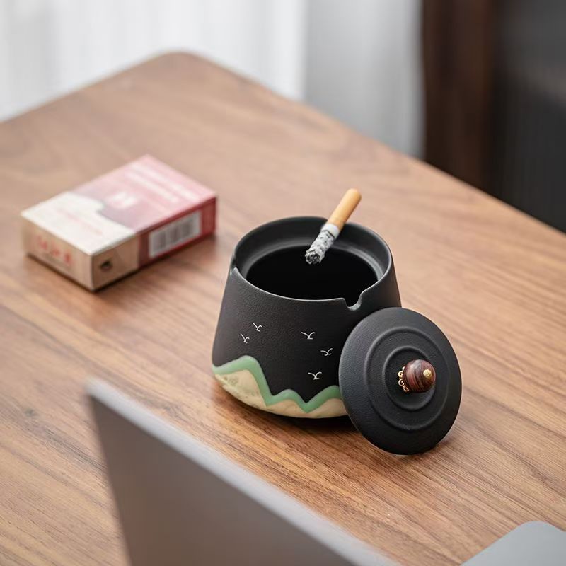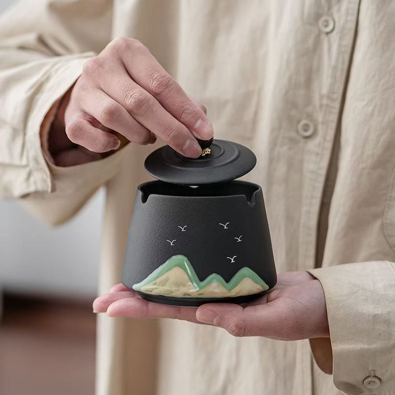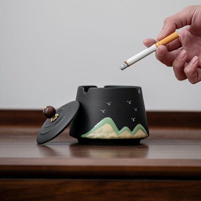 Ashtray with cover creative hand-painted remote mountain new home retro living room