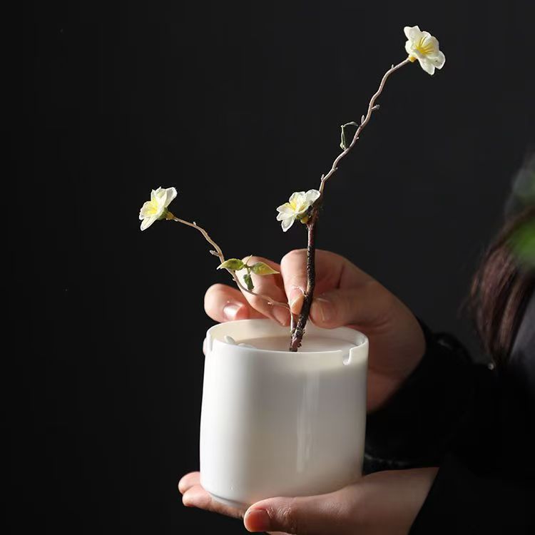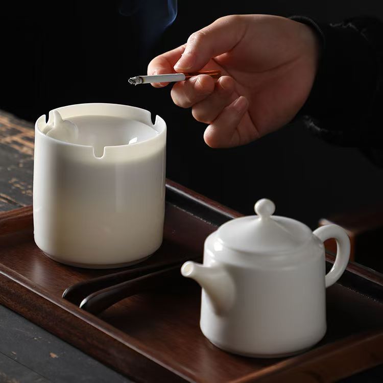 Lamb fat jade white porcelain ashtray light luxury personality trend office living room with cover fly ash customization