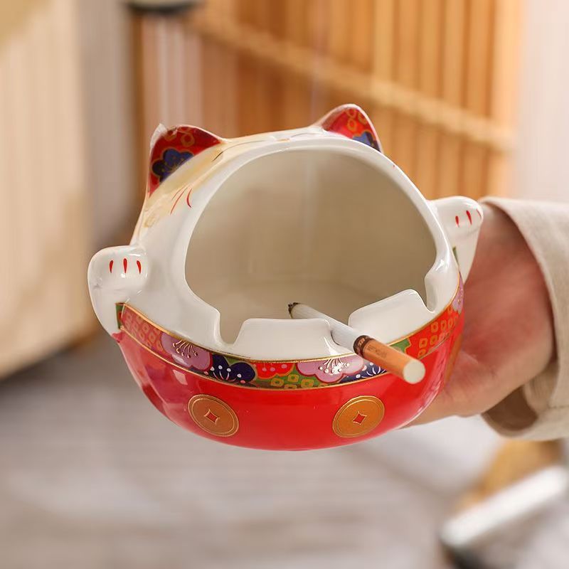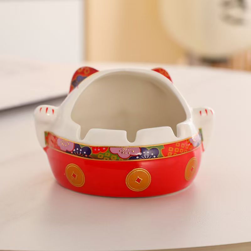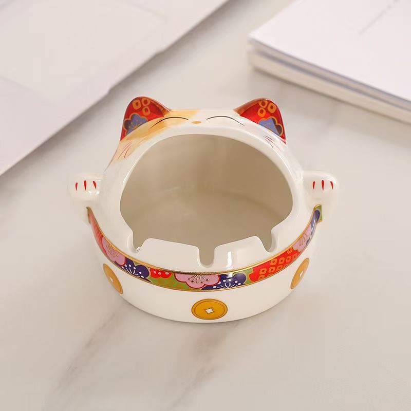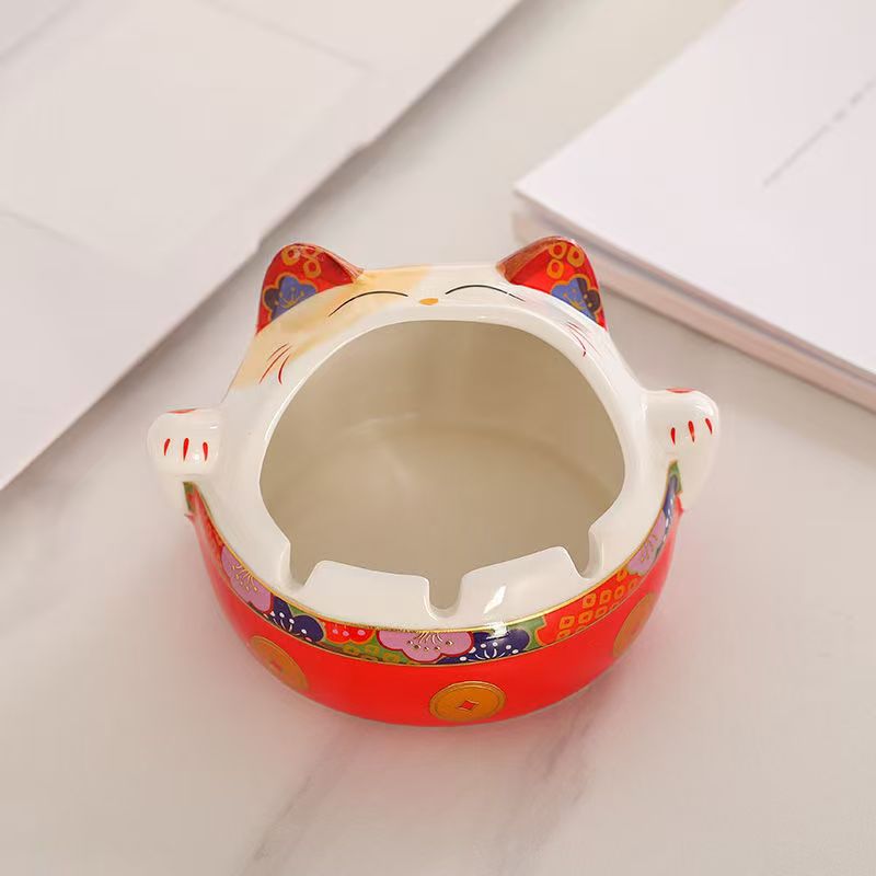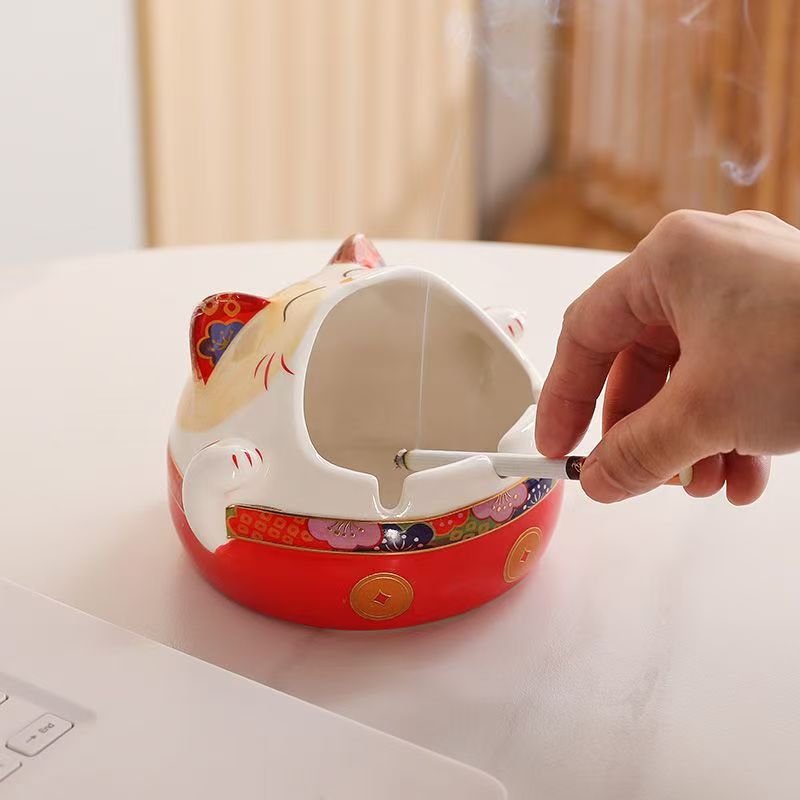 Lucky cat ashtray to send boyfriend home living room office cartoon light luxury funny desktop decoration