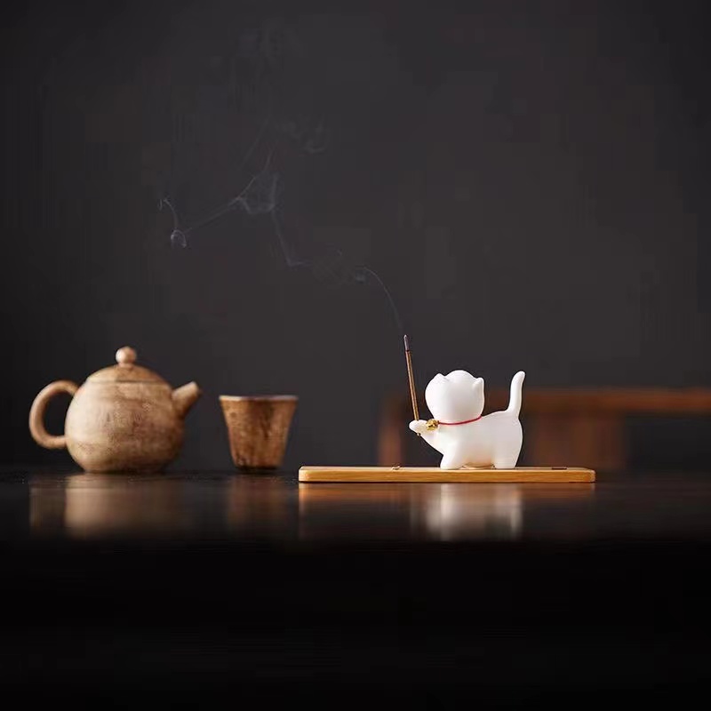 Cute kitten ceramic creative decoration soft cute indoor tea pet home thread sandalwood home incense cartoon