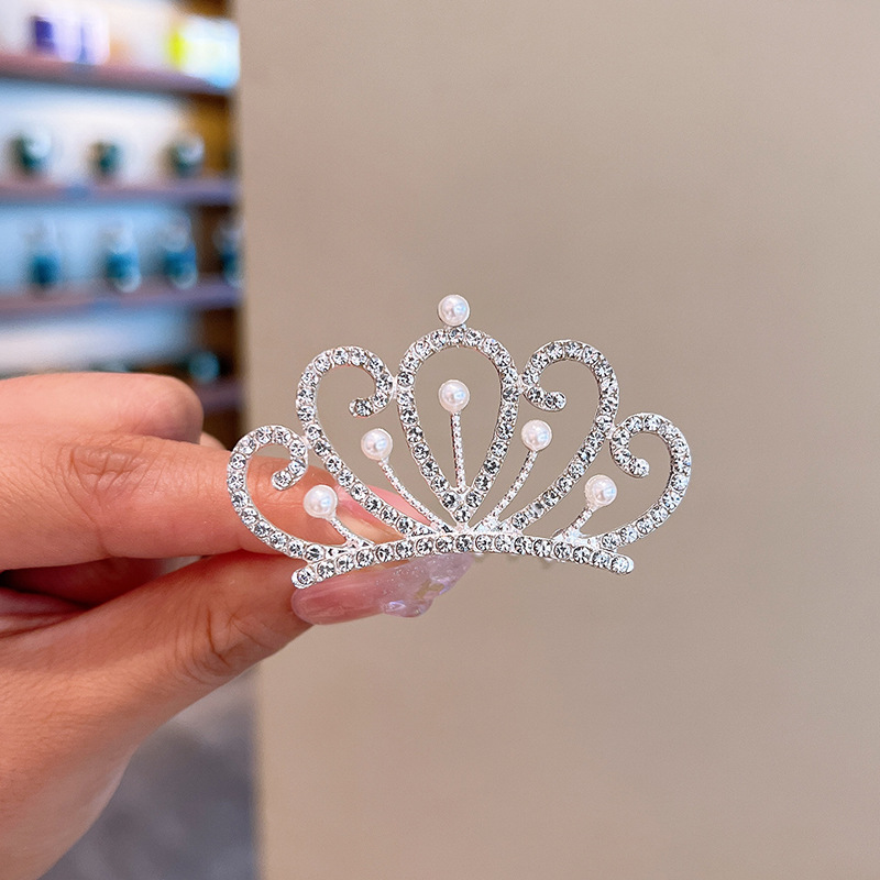 Girls' Crown Tiara Children's Korean Crown Birthday Show Princess Baby Rhinestones with hair clips and hair clips