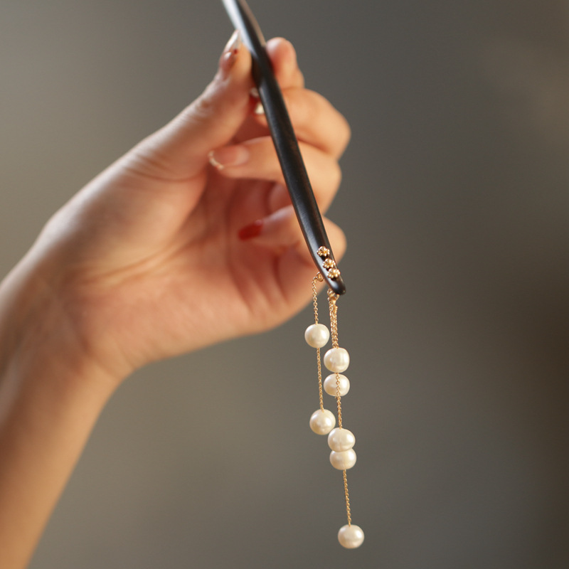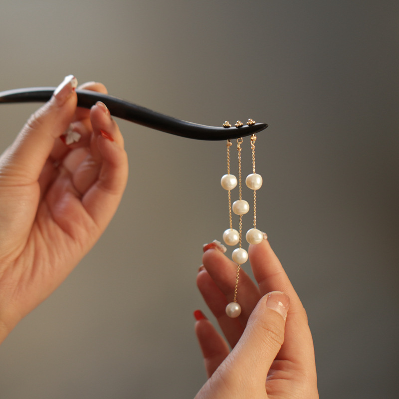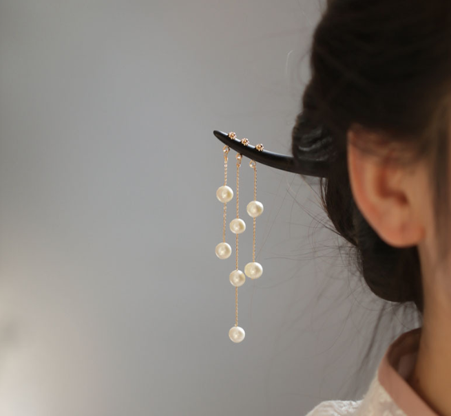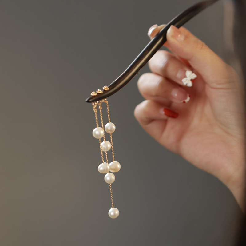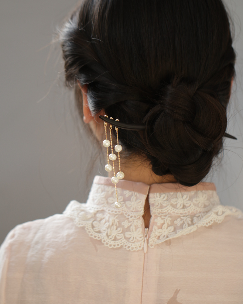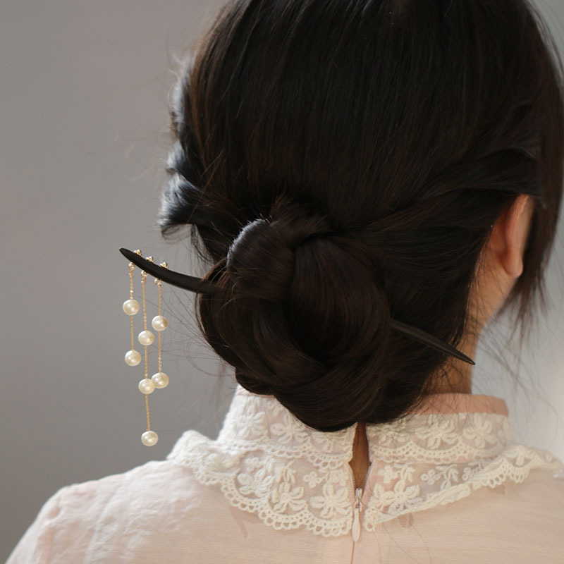 Hair accessories Senior sense ball head pan hair wood hairpin pearl fringe cheongsam accessories daily art tea dress hair design