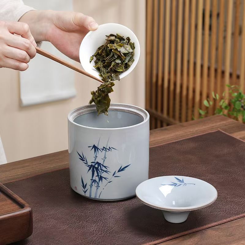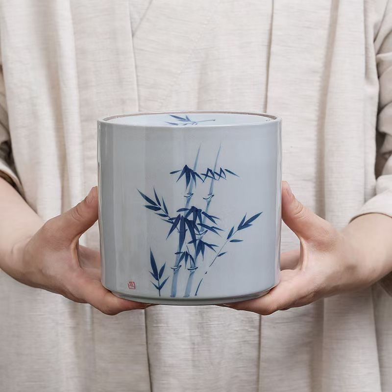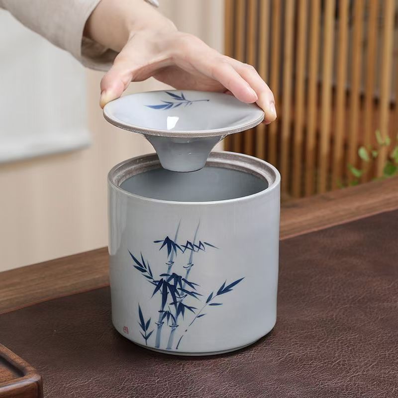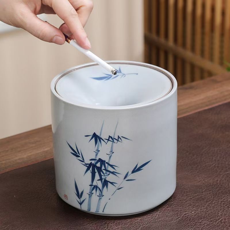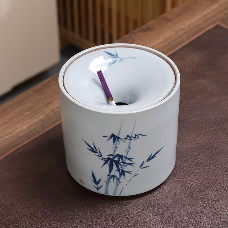 Vintage hand-painted tea residue jar water jar ashtray emerald bamboo ceramic ashtray