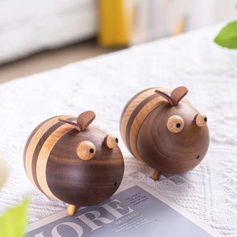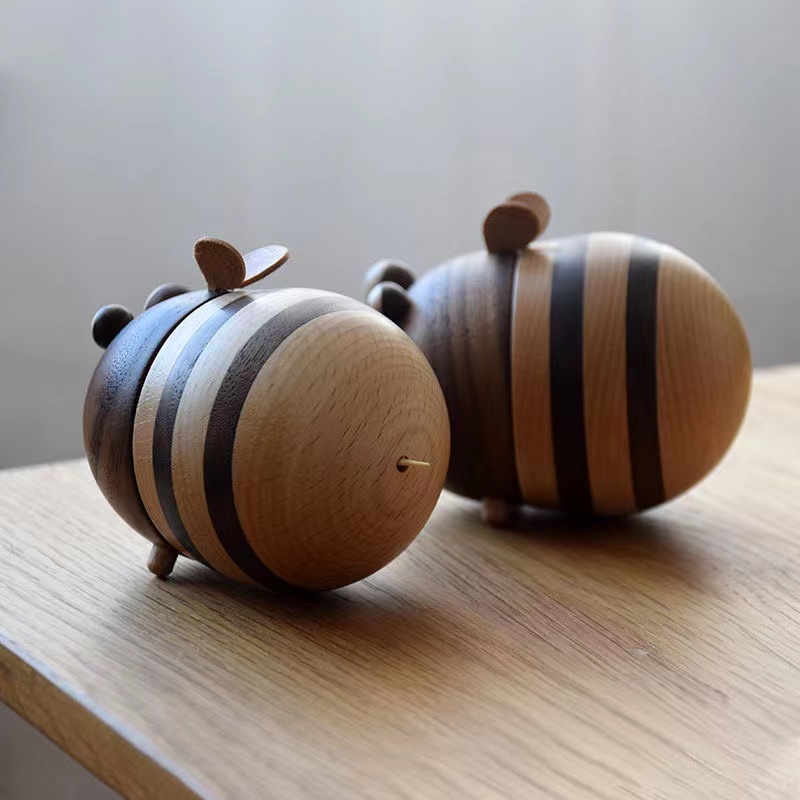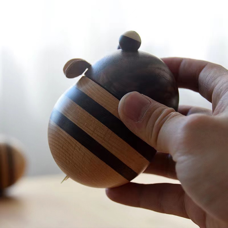 Bee toothpick box Household solid wood toothpick holder Creative cute cute decorative items portable gift toothpick jar