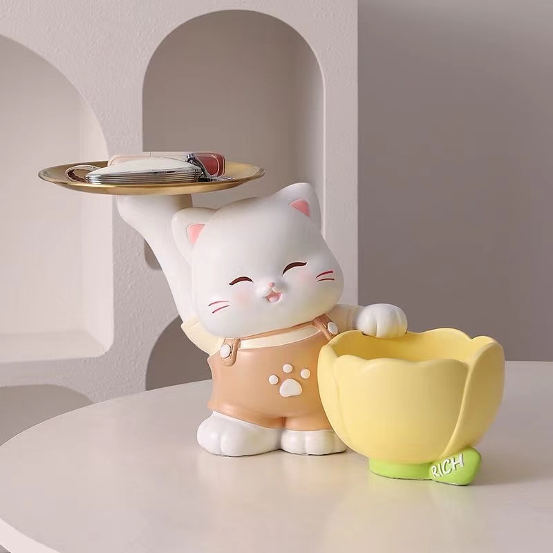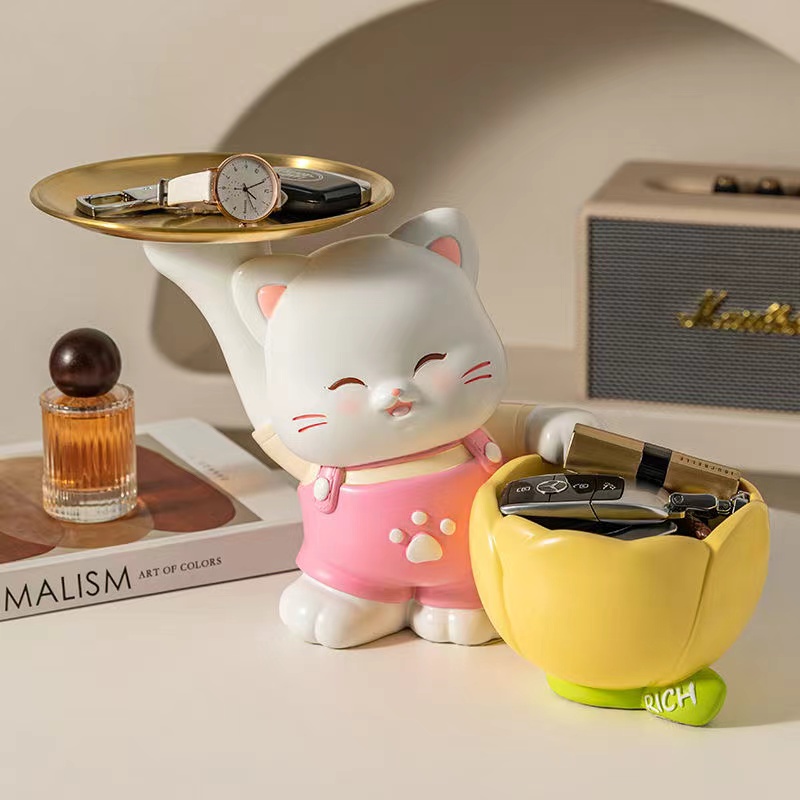 Fortune cat porch key storage ornaments Entering home living room wine cabinet decoration tray moving gift
